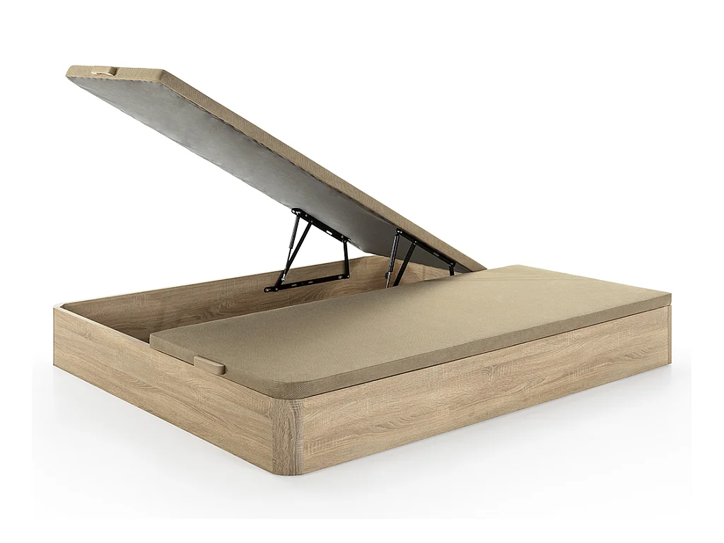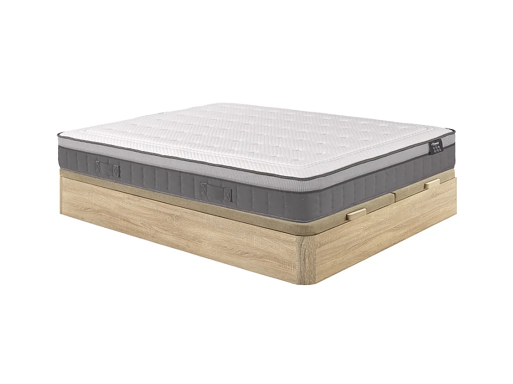 Zestaw 180 x 200 cm stelaż ze skrzynią naturalny jasny + materac hybrydowy o grub. 30 cm z 7-strefowymi sprężynami kieszeniowymi i pamięcią kształtu - ASGARD marki YSMÉE