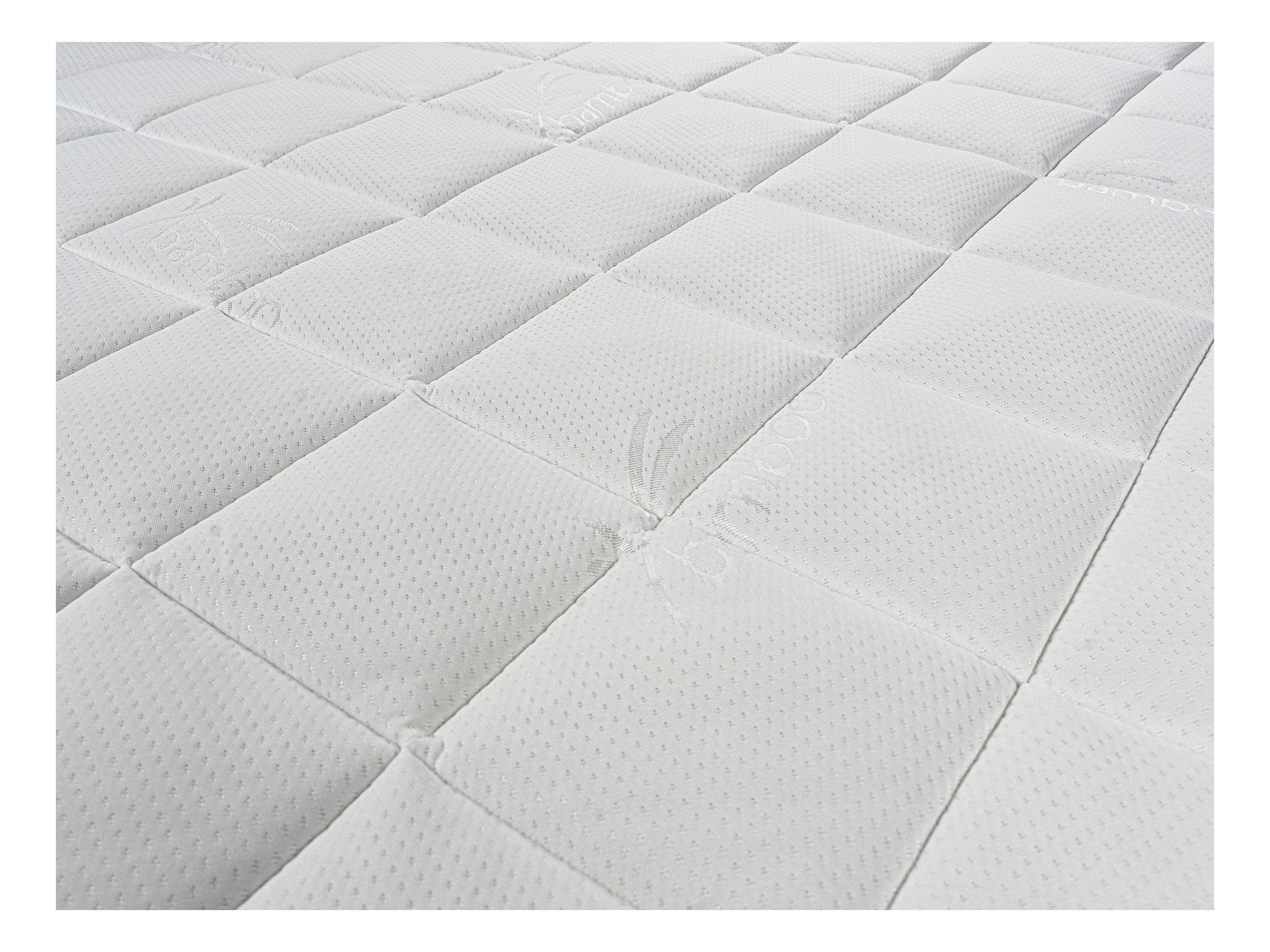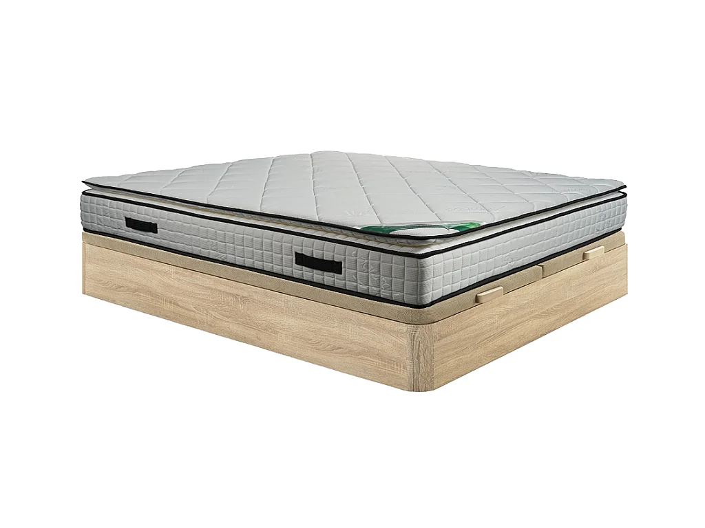 Zestaw 180 x 200 cm stelaż ze skrzynią naturalny jasny + materac piankowy o grub. 23 cm z bambusowym pokrowcem - ADANA marki NATUREA