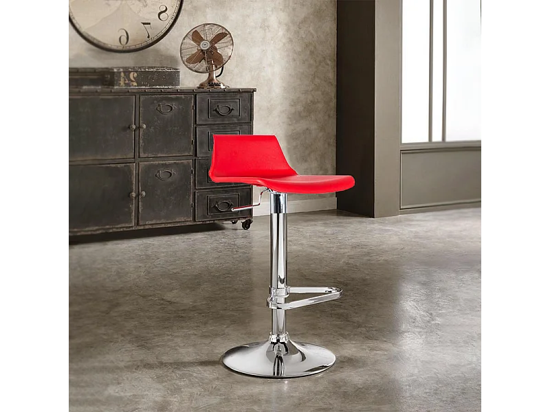 Zestaw 2 czerwonych wysokich krzeseł "Henri" z polipropylenu z podnośnikiem gazowym i podnóżkiem, 41x39 cm, 72h