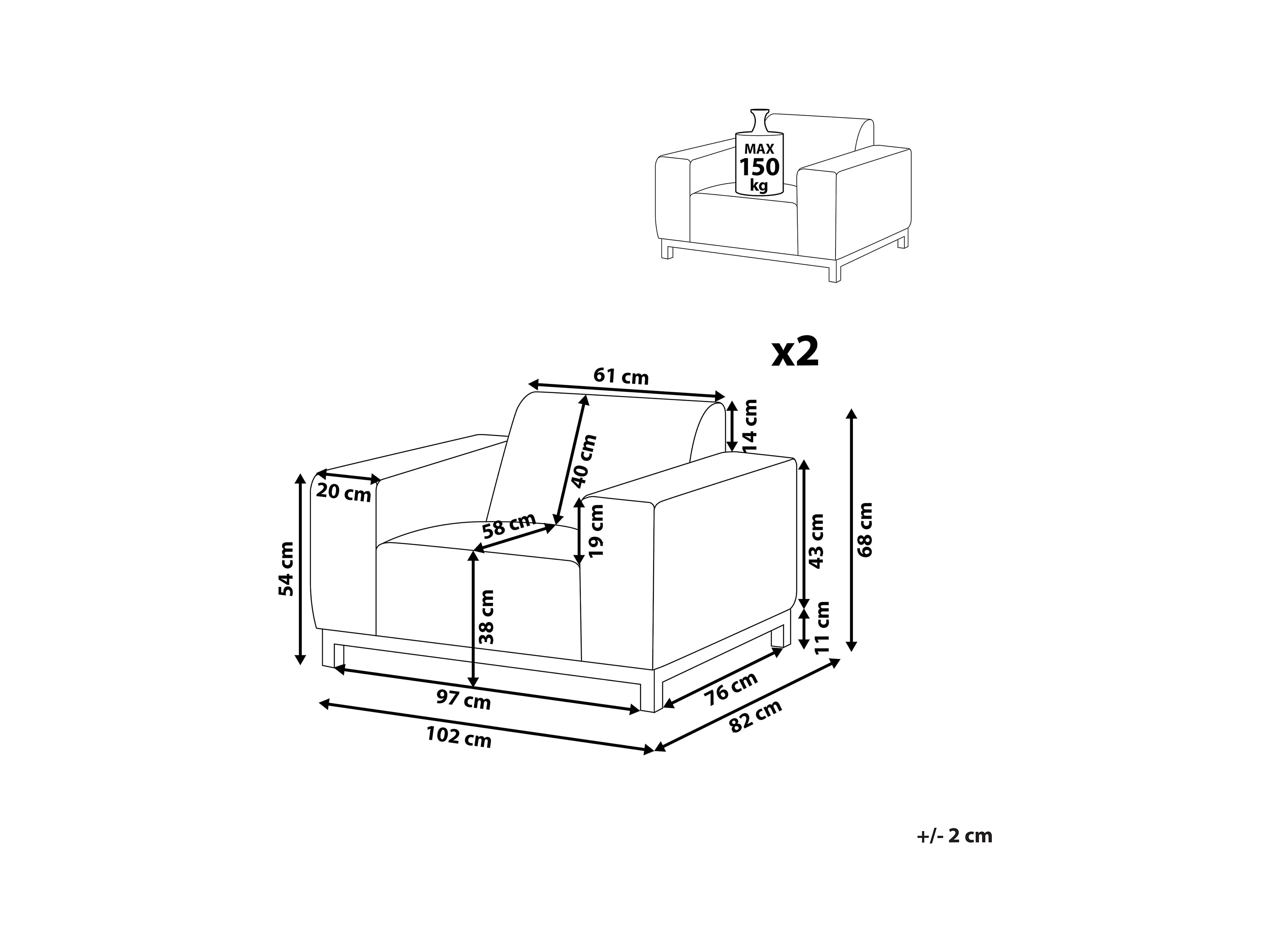 Fotel wypoczynkowy MCW-H54 (zestaw 2 szt.), szare, tapicerka ciemnoszara
