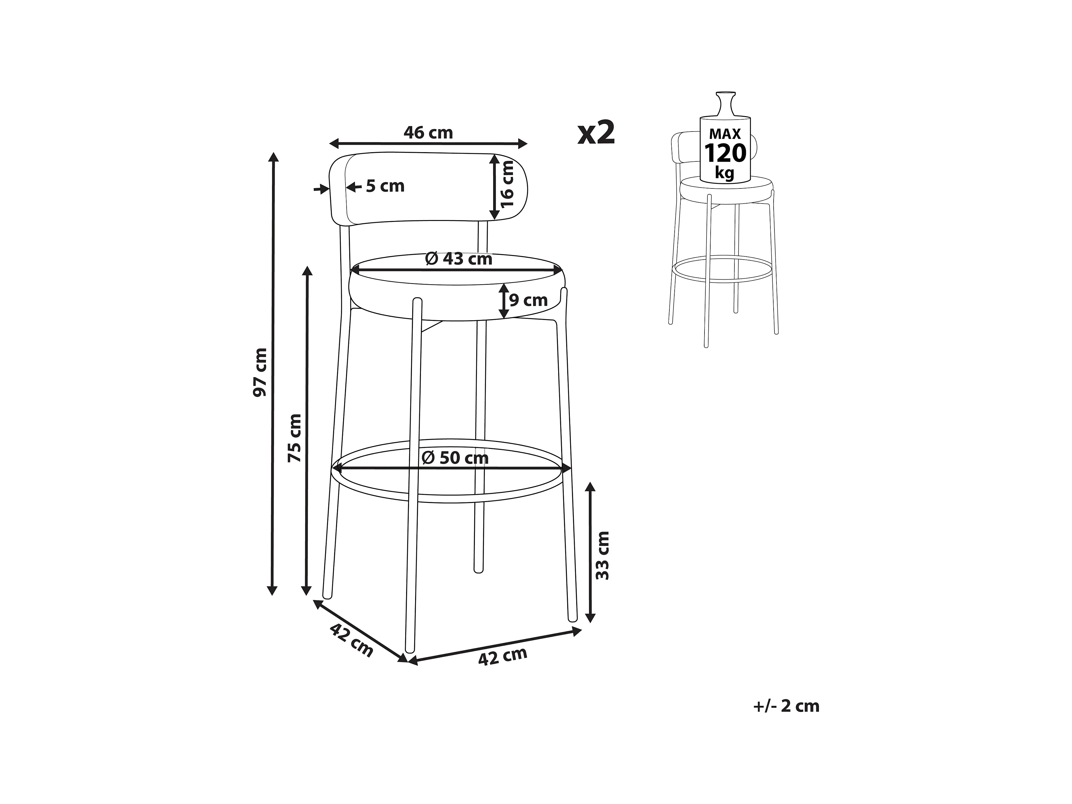 Zestaw 2 krzeseł barowych ALLISON Boucle Czarny
