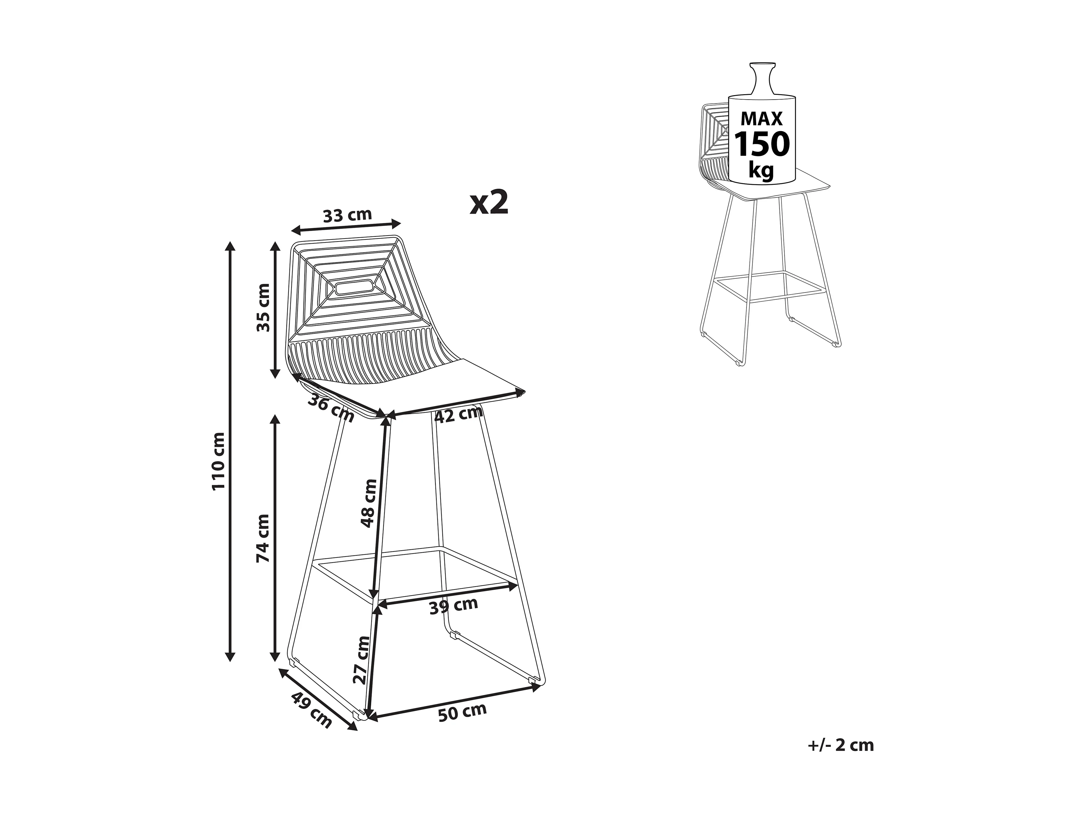 Zestaw 2 stołków barowych MCW-N22, czarny
