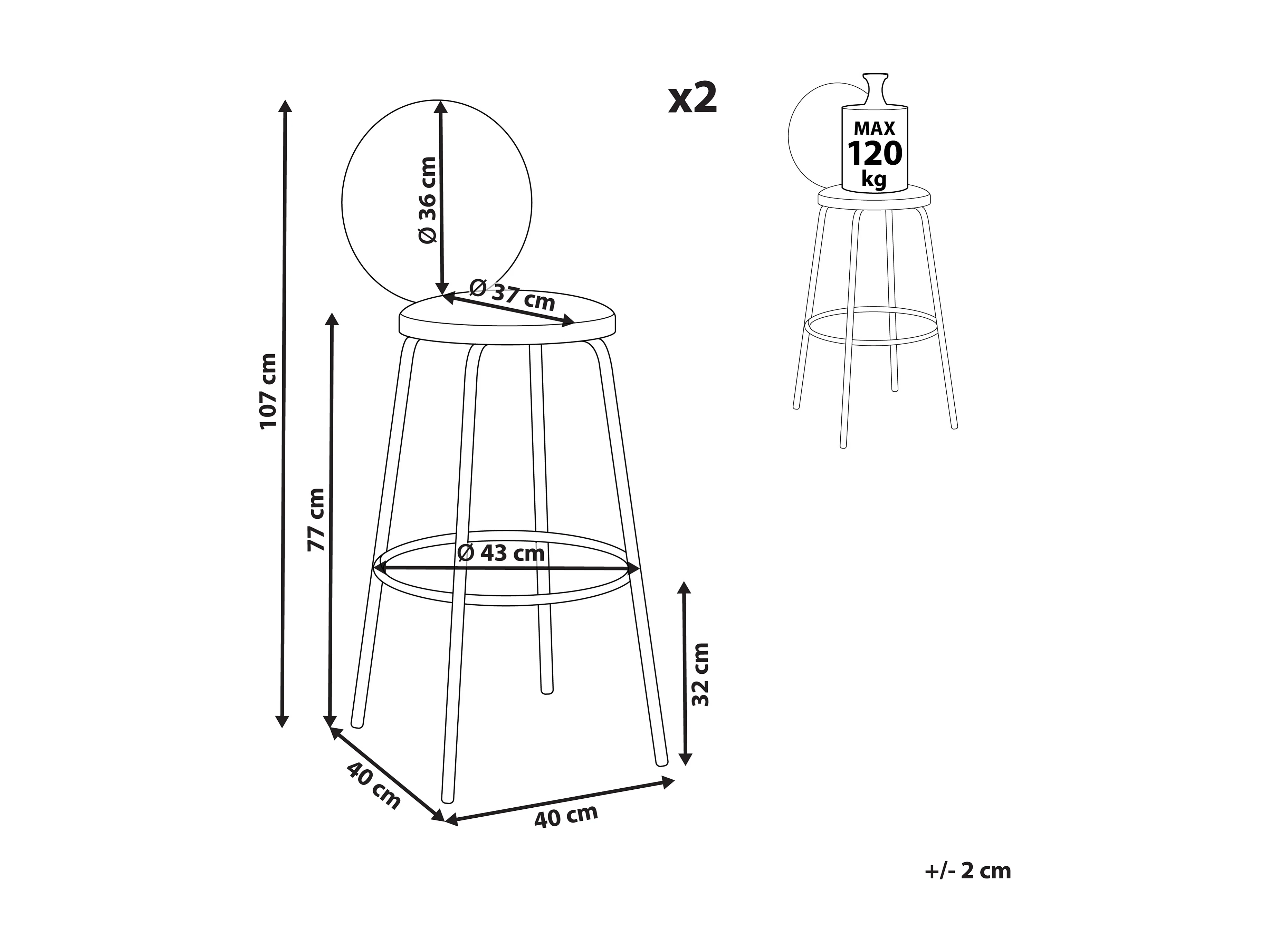 Komplet 2 szt.Krzesło barowe