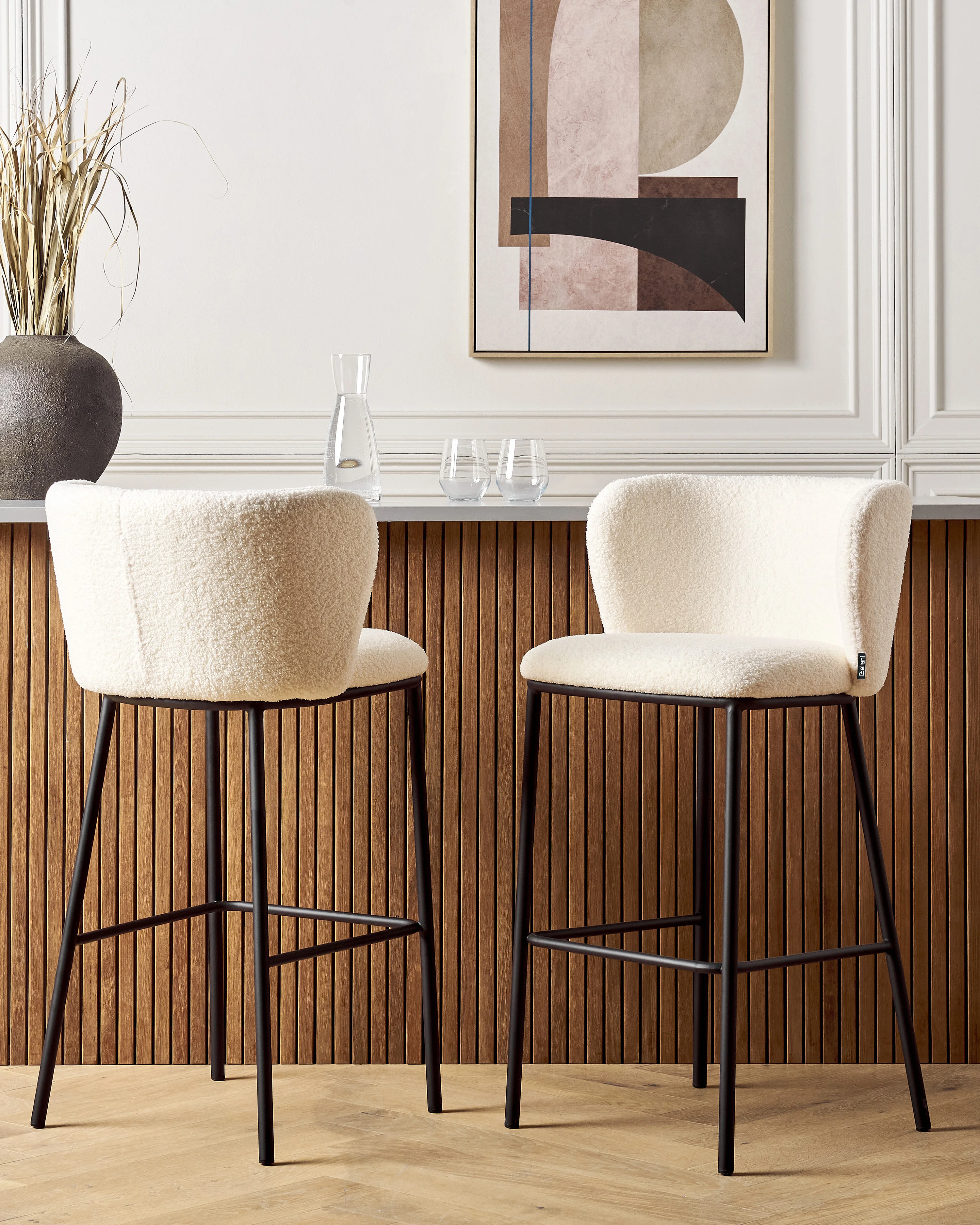 Zestaw 2 krzeseł barowych MINA Boucle Biały