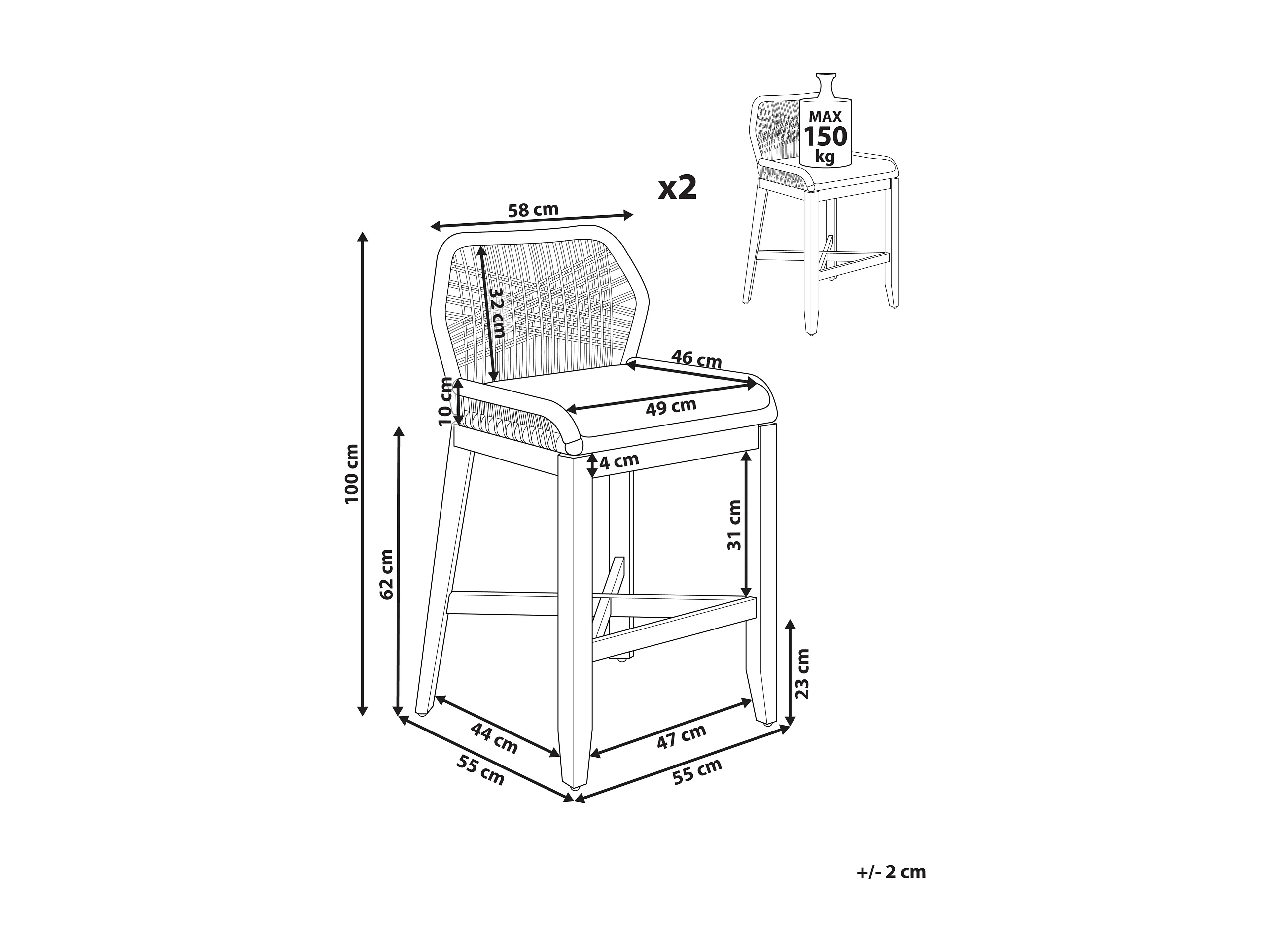 Zestaw 2 krzeseł barowych ogrodowych TALAMONE Drewno akacjowe Beżowy