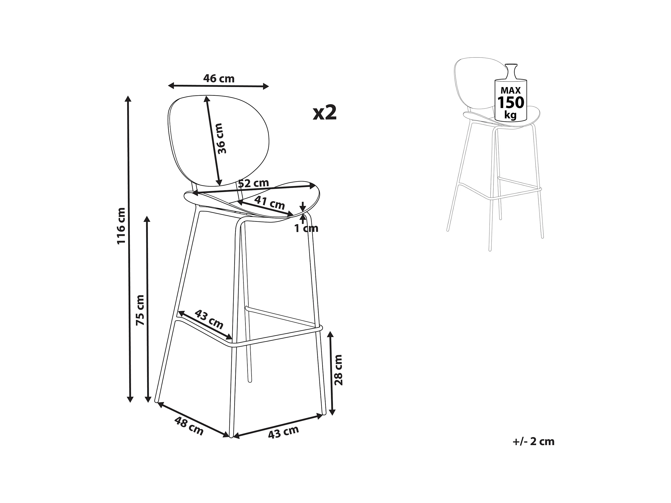 Zestaw 2 krzeseł barowych ALLISON Boucle Czarny