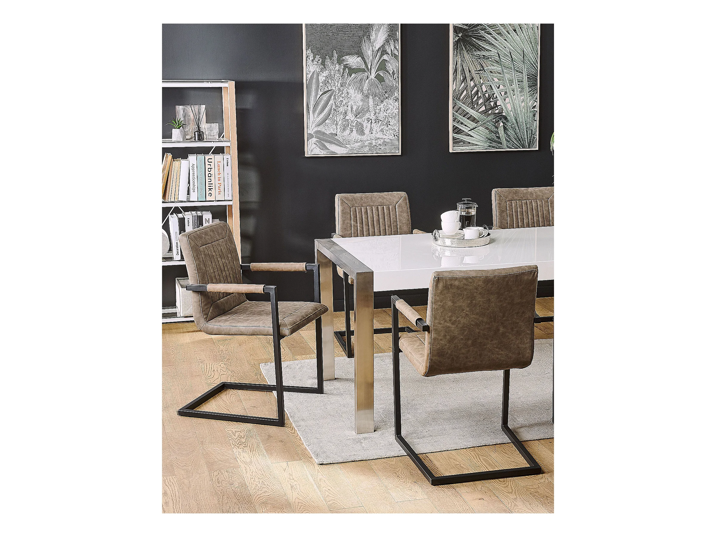 Zestaw 2 nowoczesnych krzeseł ze skóry ekologicznej w kolorze brązowym "Quito" z metalowymi nogami, 44x56 cm, 86,5 h