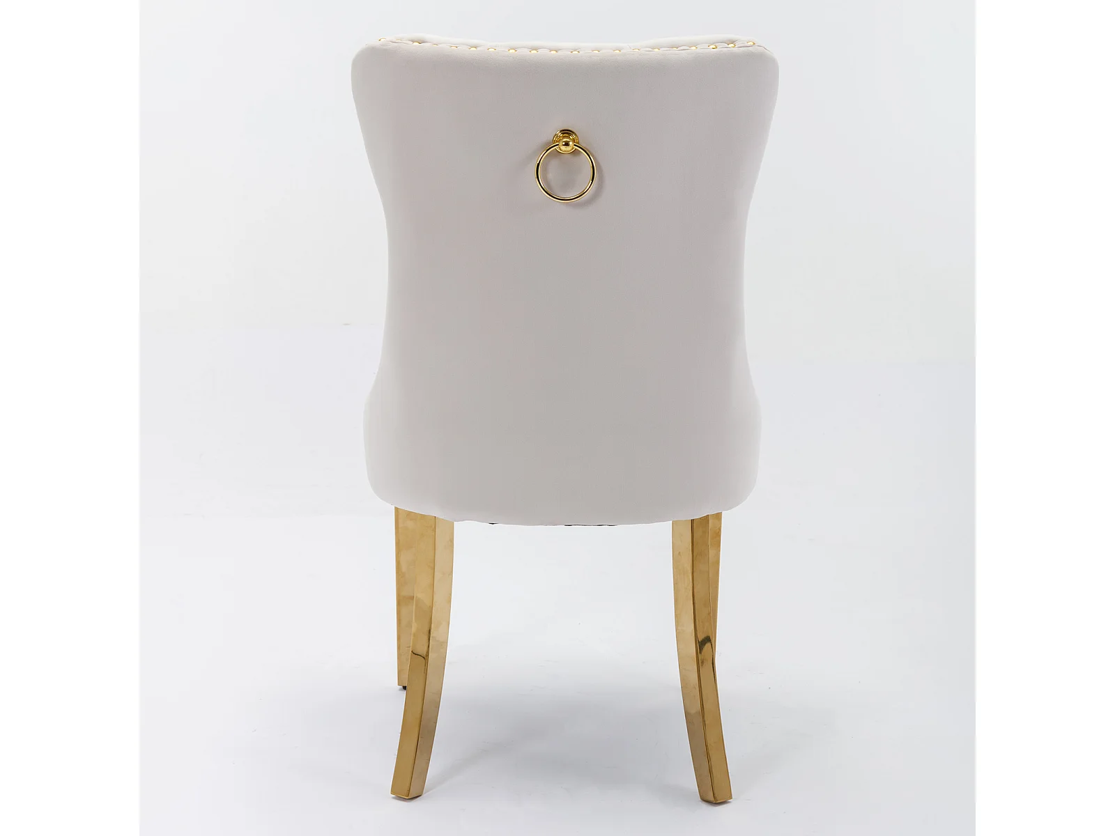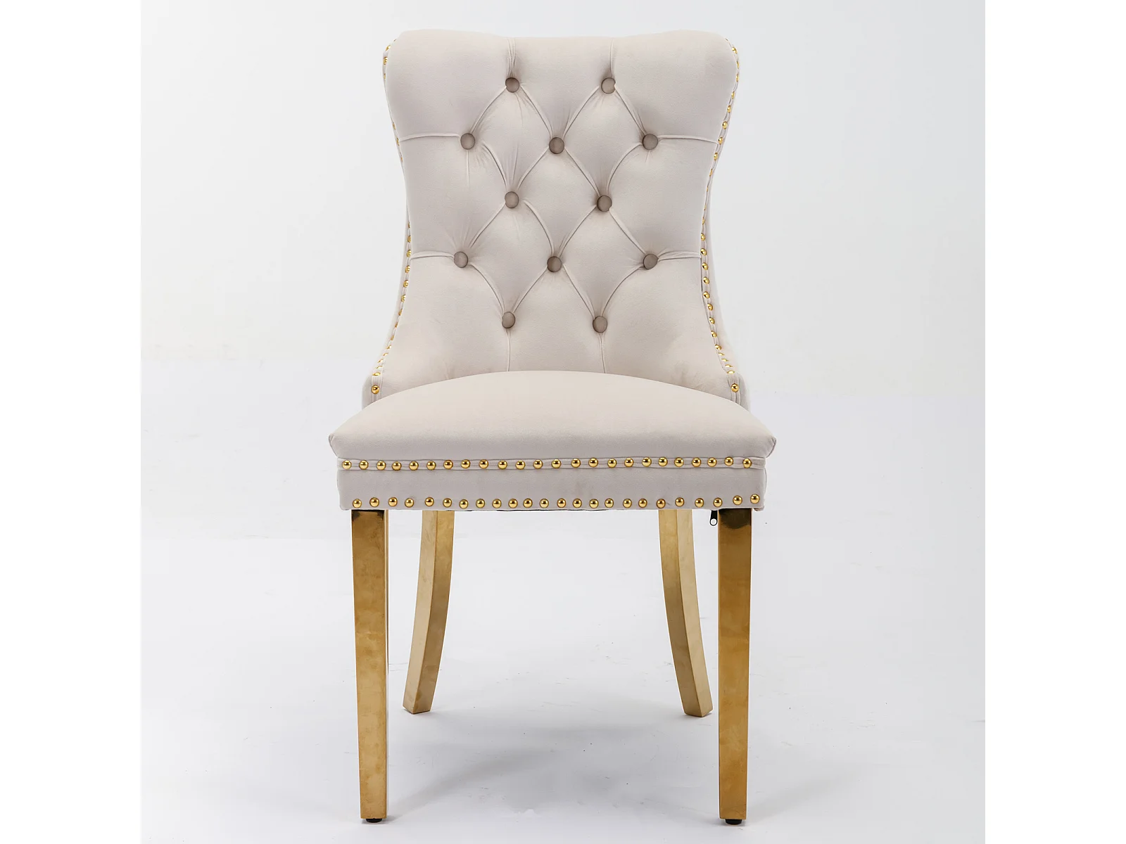 Zestaw 2 krzeseł jadalnianych z beżowego aksamitu z tapicerowanym oparciem i złotymi metalowymi nogami