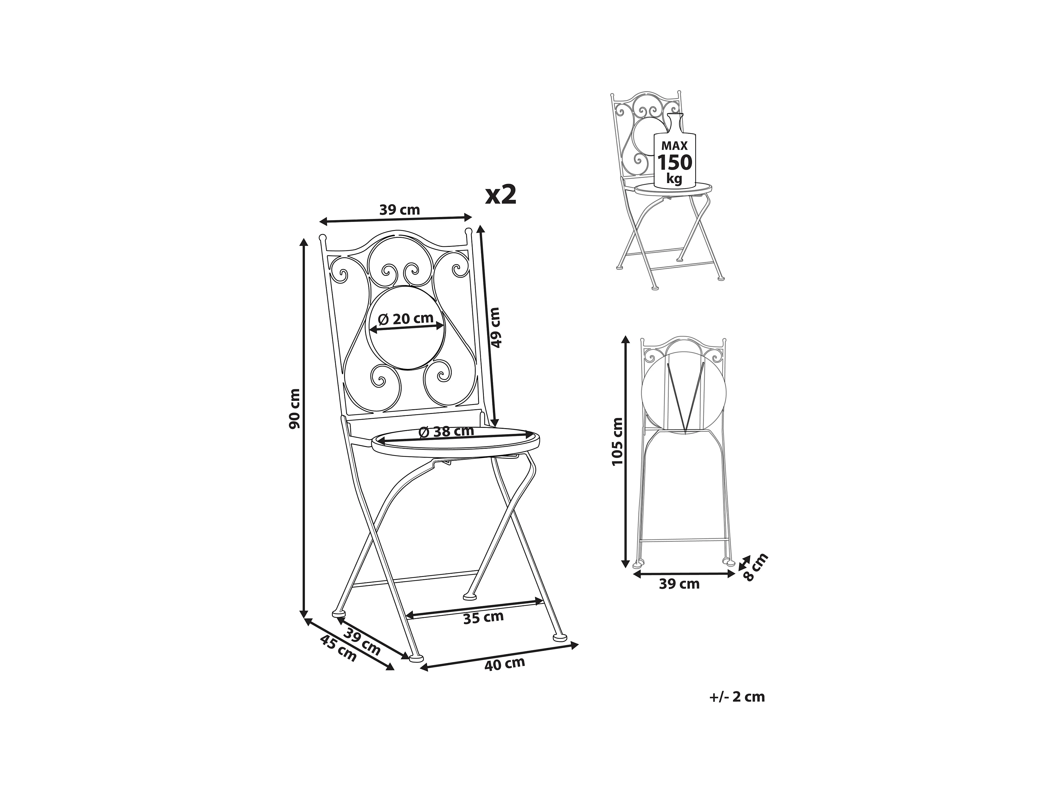 Pakiet dwóch składanych krzeseł ogrodowych Perla z metalu w kolorze czarnym.
