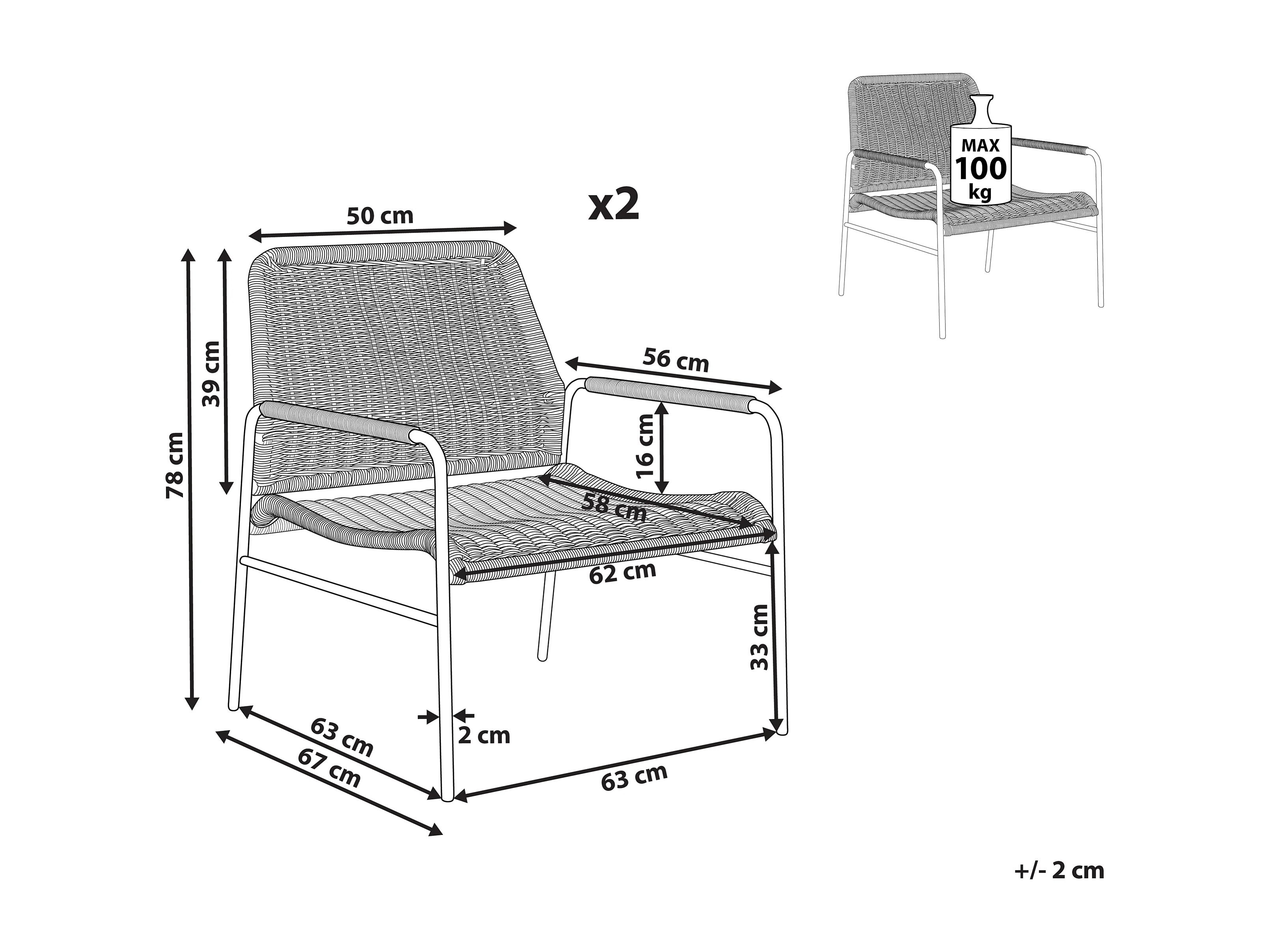 Zestaw 2 foteli ogrodowych ARDEA Rattan Jasnobrązowy