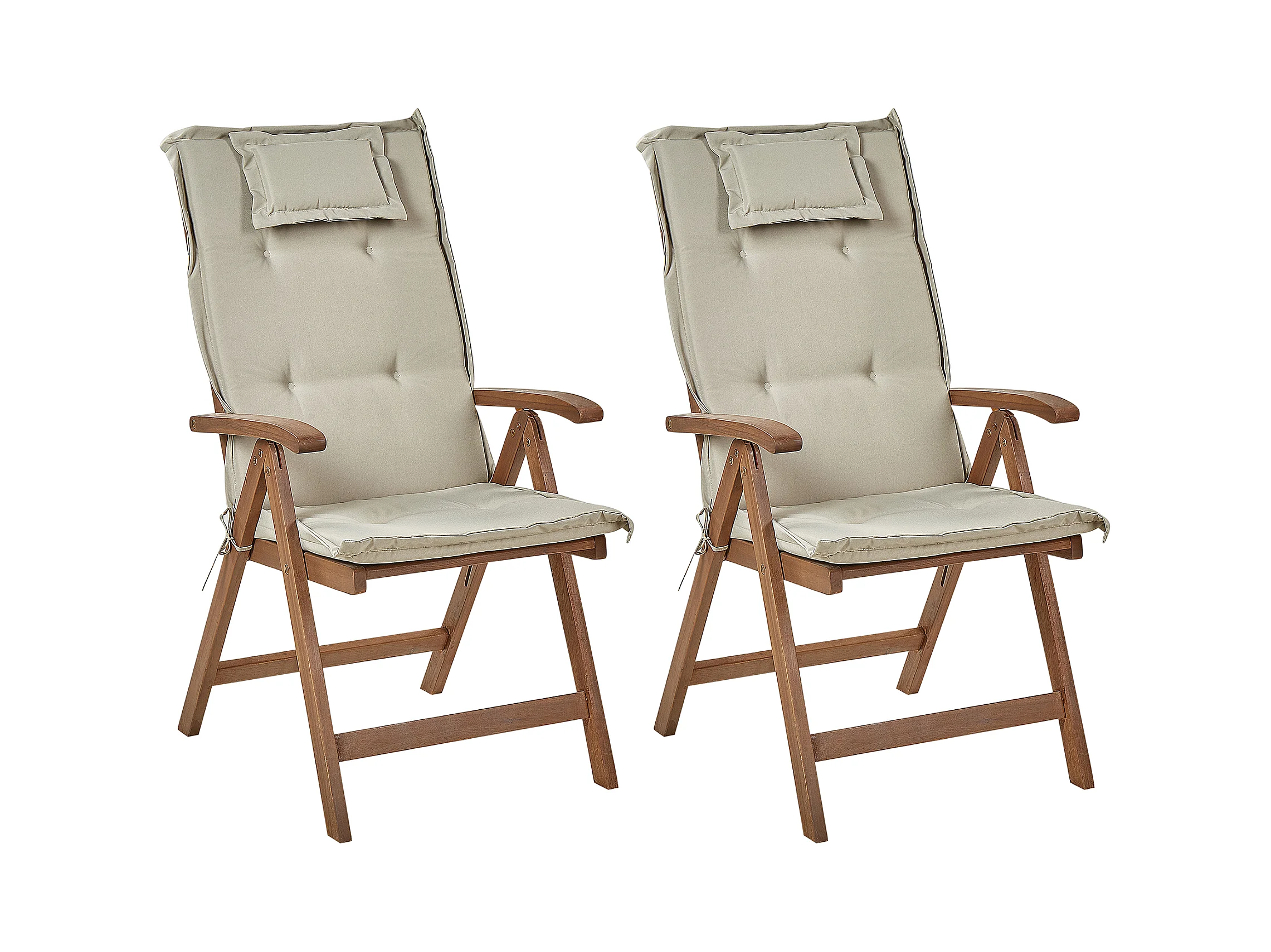 Zestaw 2 krzeseł ogrodowych z poduszkami AMANTEA Drewno akacjowe Beżowoszary