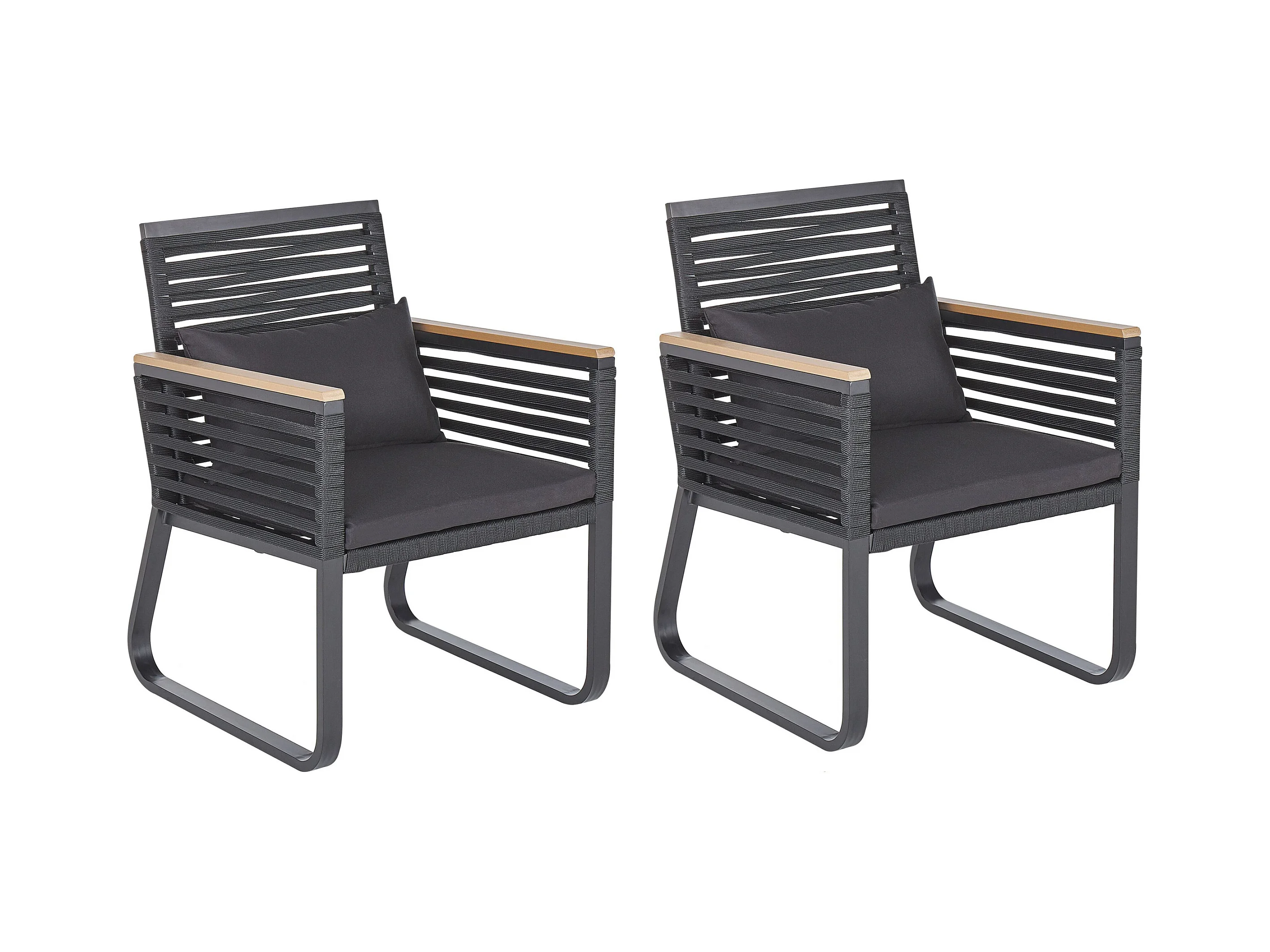 Zestaw 2 krzeseł ogrodowych z poduszkami CANETTO Metal Czarny