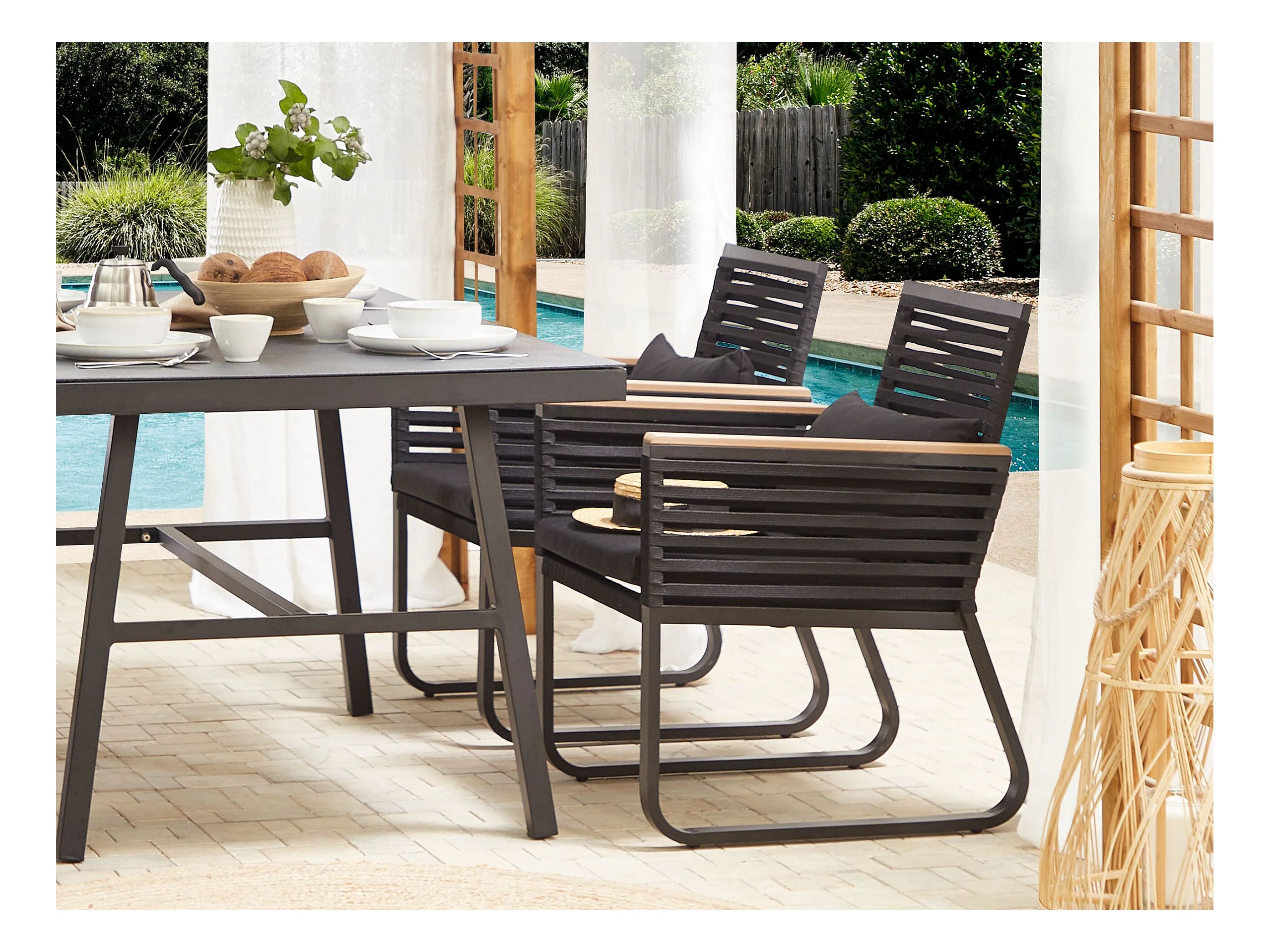 Zestaw 2 antracytowych krzeseł aluminiowych z podłokietnikami - VICTORIA