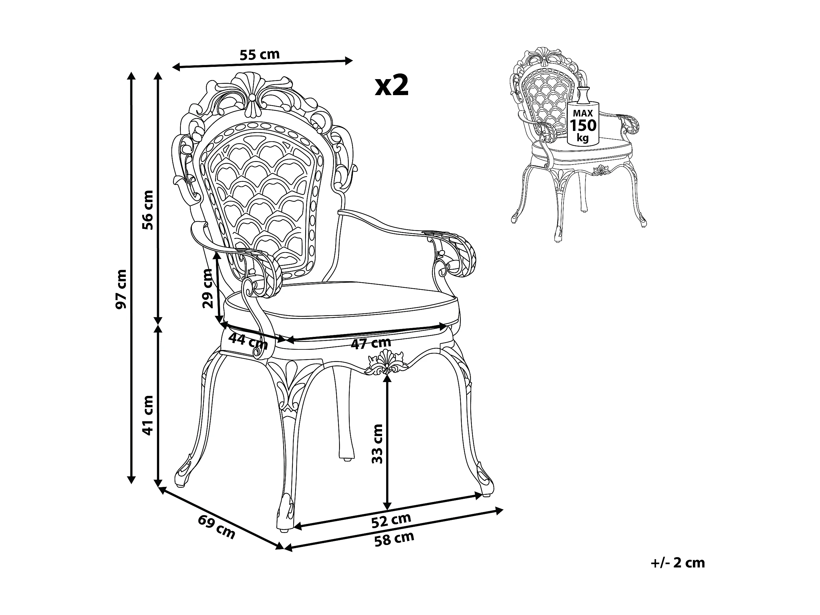 Krzesło ogrodowe MCW-N38 (zestaw 2 sztuk), kremowa poduszka jasnobrązowa