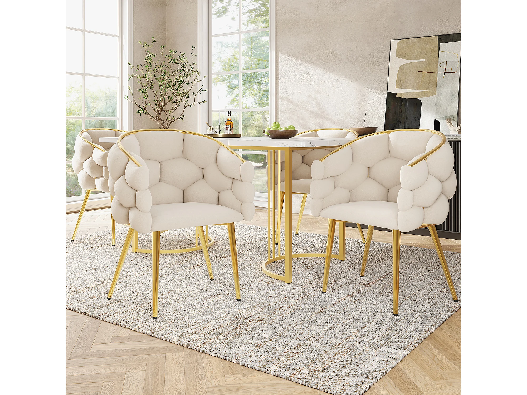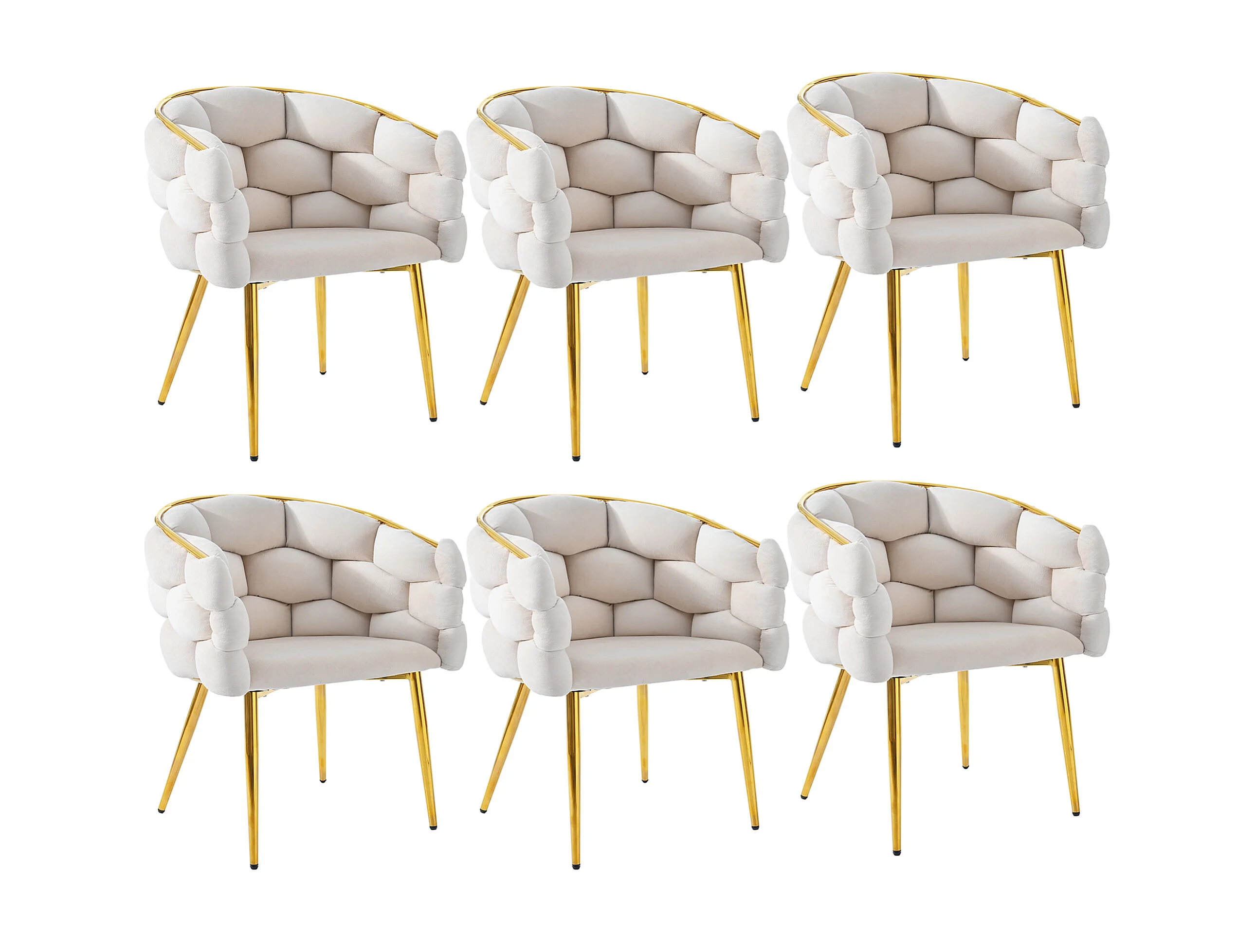 Zestaw 6 welurowych krzeseł z podłokietnikami i złotymi metalowymi nogami – beżowo-złoty