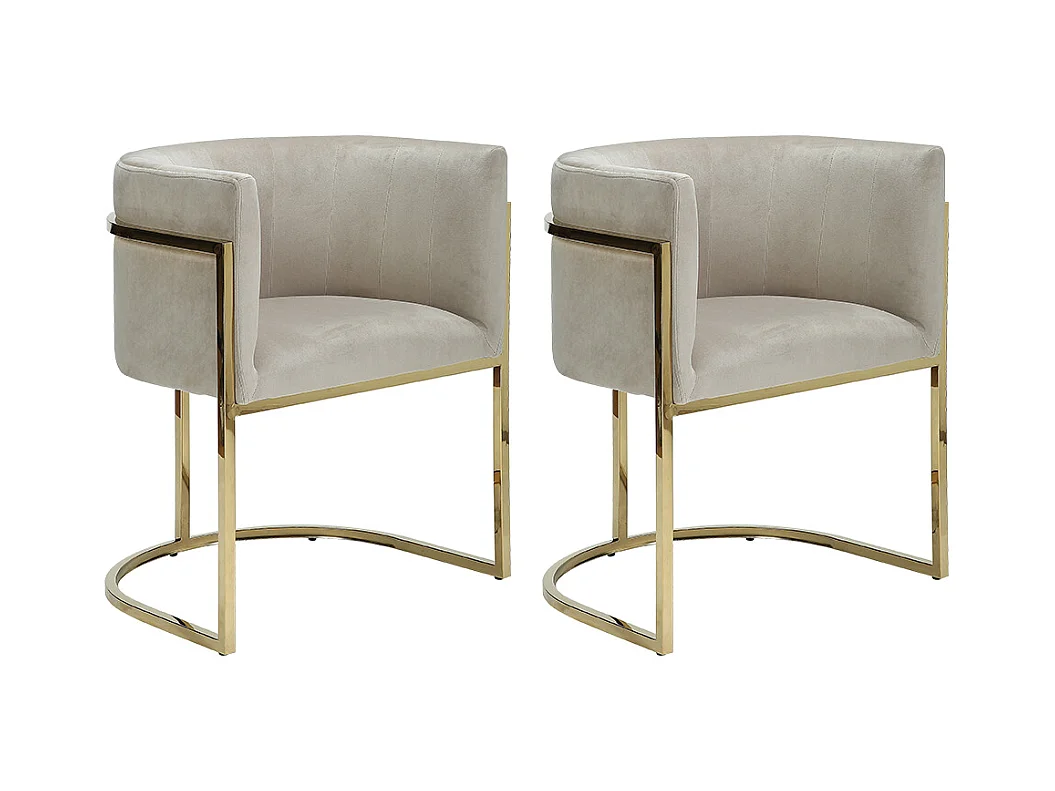 Zestaw 2 krzeseł z podłokietnikami PERIA marki Pascal Morabito – welur i metal – kolor beżowy i złoty