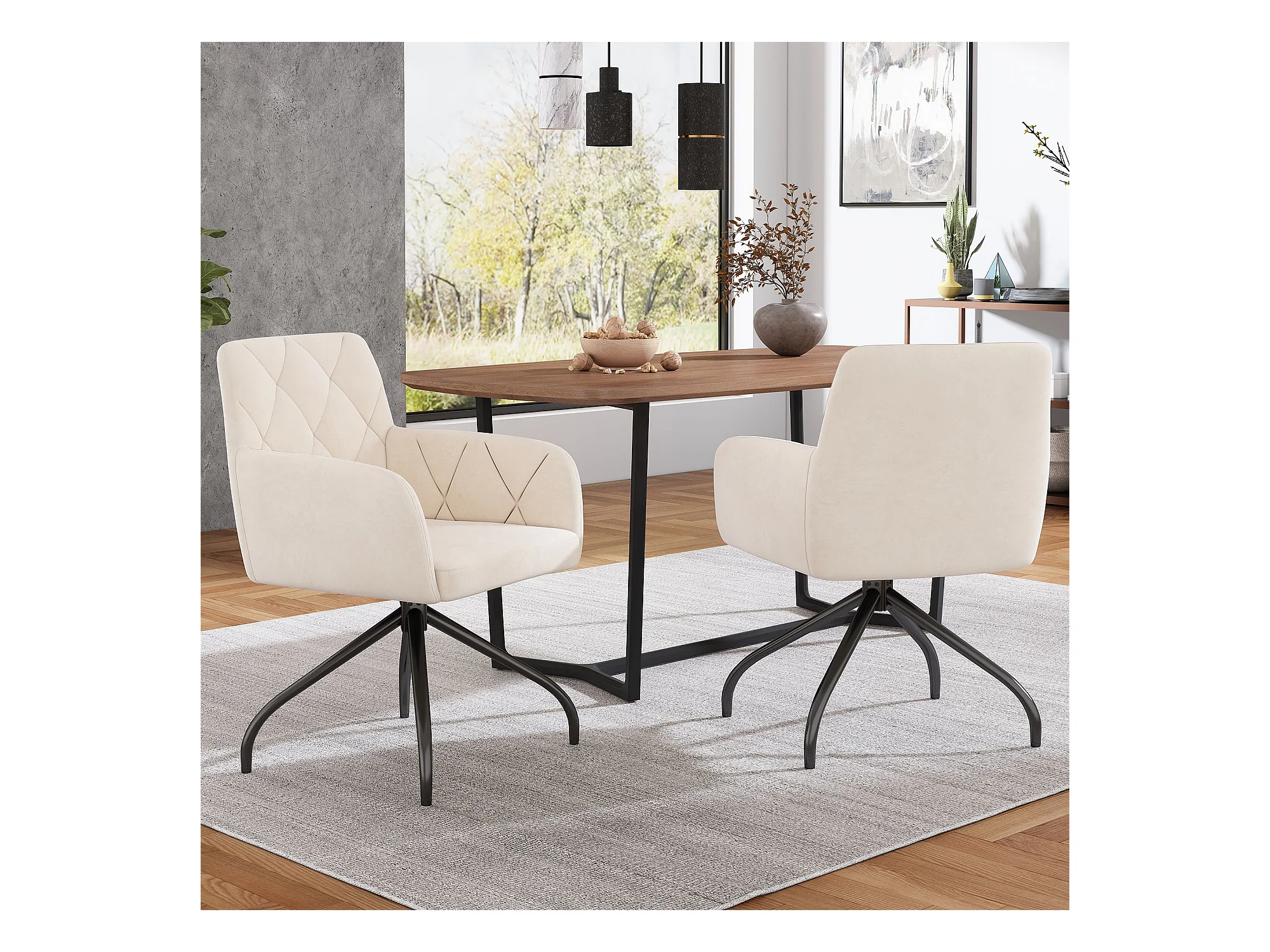 Zestaw 2 krzeseł do jadalni - 60 x 60 x 88 cm - krzesła tapicerowane - obrotowe 360° - aksamitne - beżowe