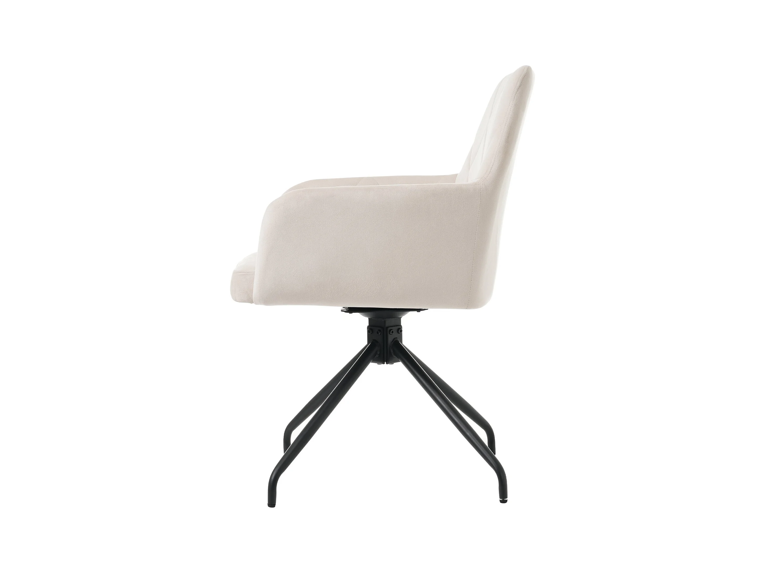 Zestaw 2 obrotowych krzeseł do jadalni, beżowy aksamit, krzesło z podłokietnikami i oparciem, nogi metalowe
