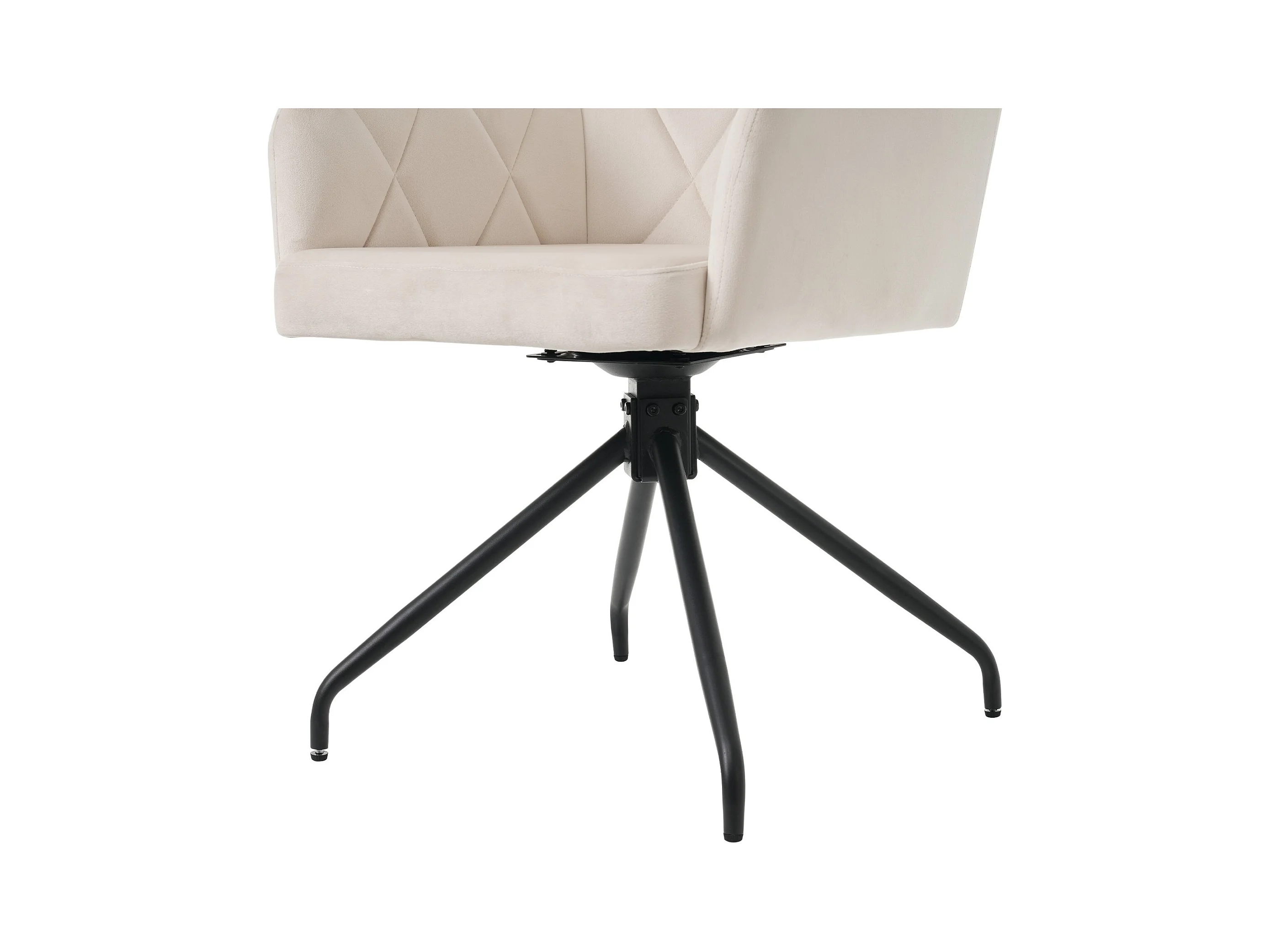 Zestaw 2 obrotowych krzeseł do jadalni, beżowy aksamit, krzesło z tapicerowanym oparciem, czarne metalowe nogi