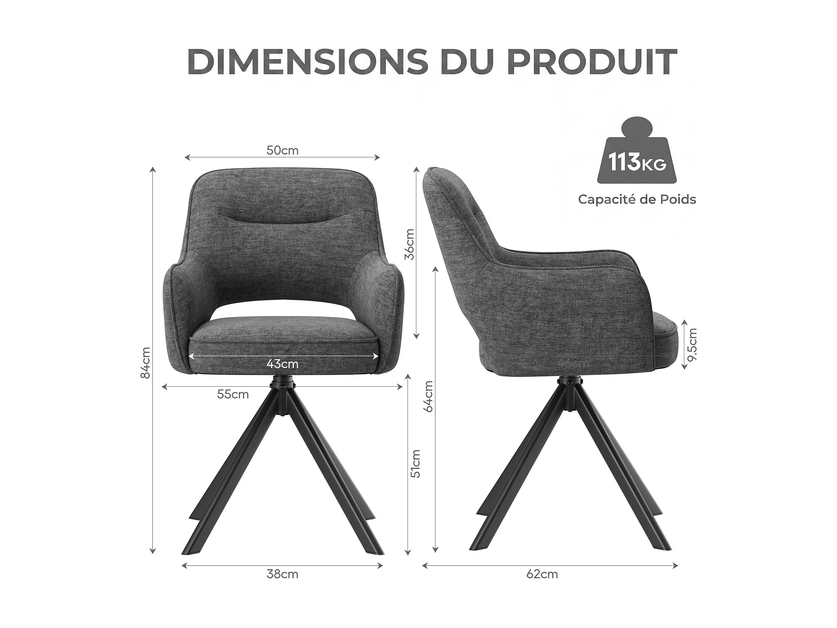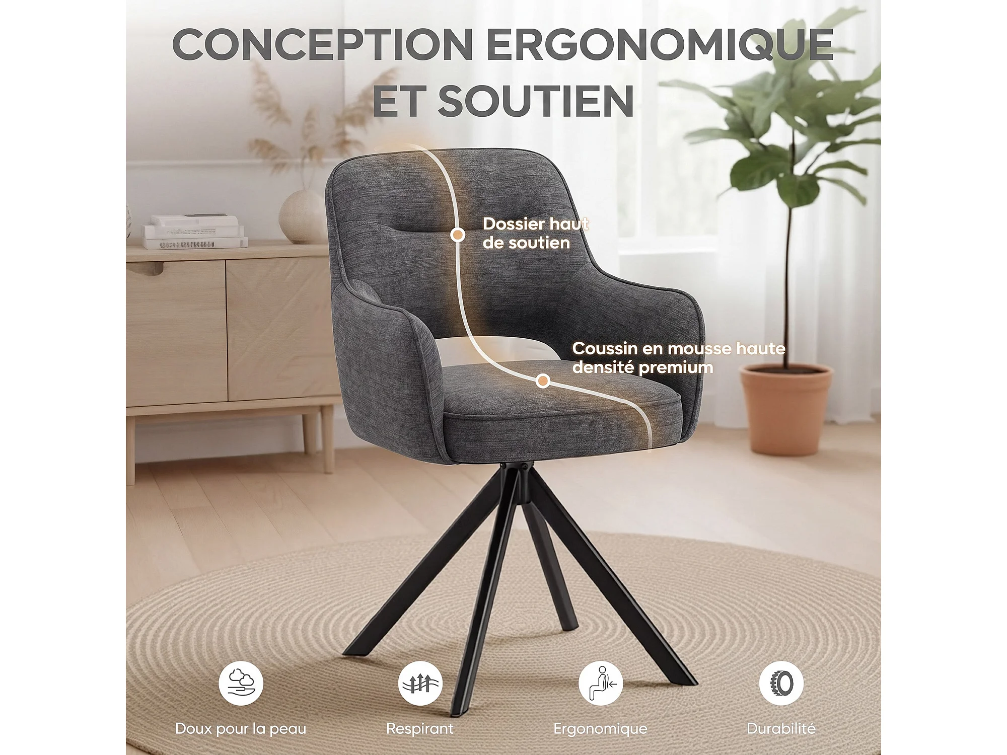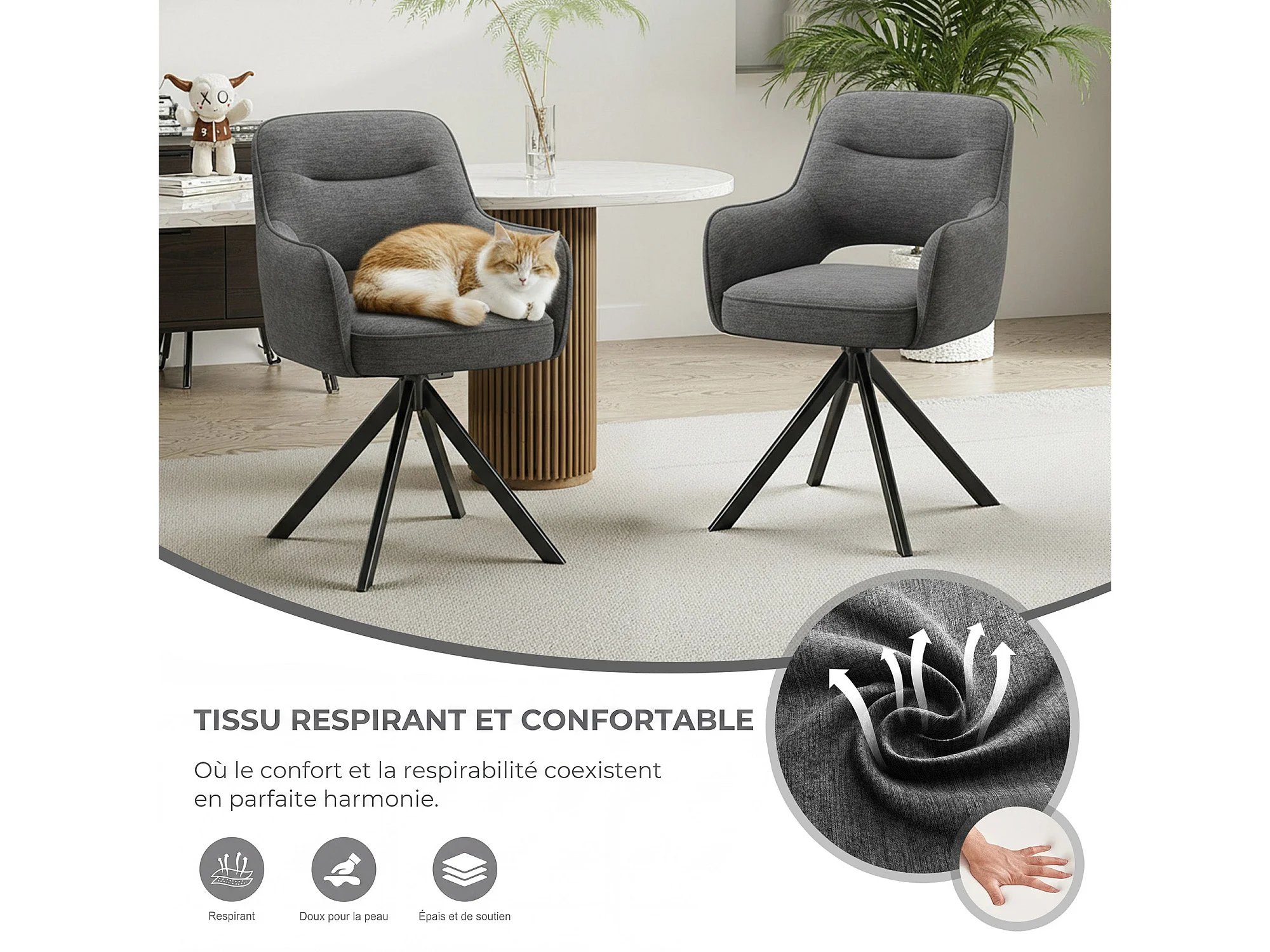 Zestaw 2 obrotowych krzeseł premium z półpodłokietnikami – Metalowa podstawa o wysokiej stabilności – Beżowy