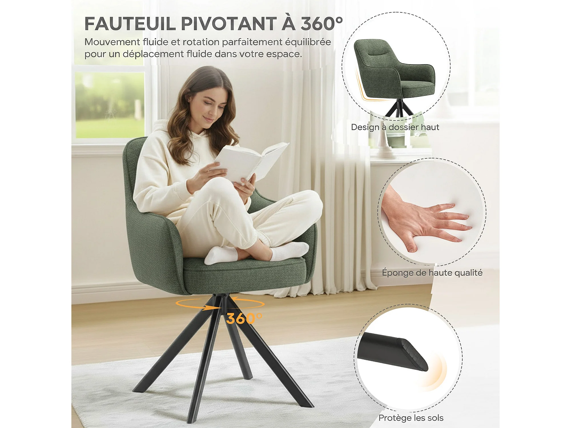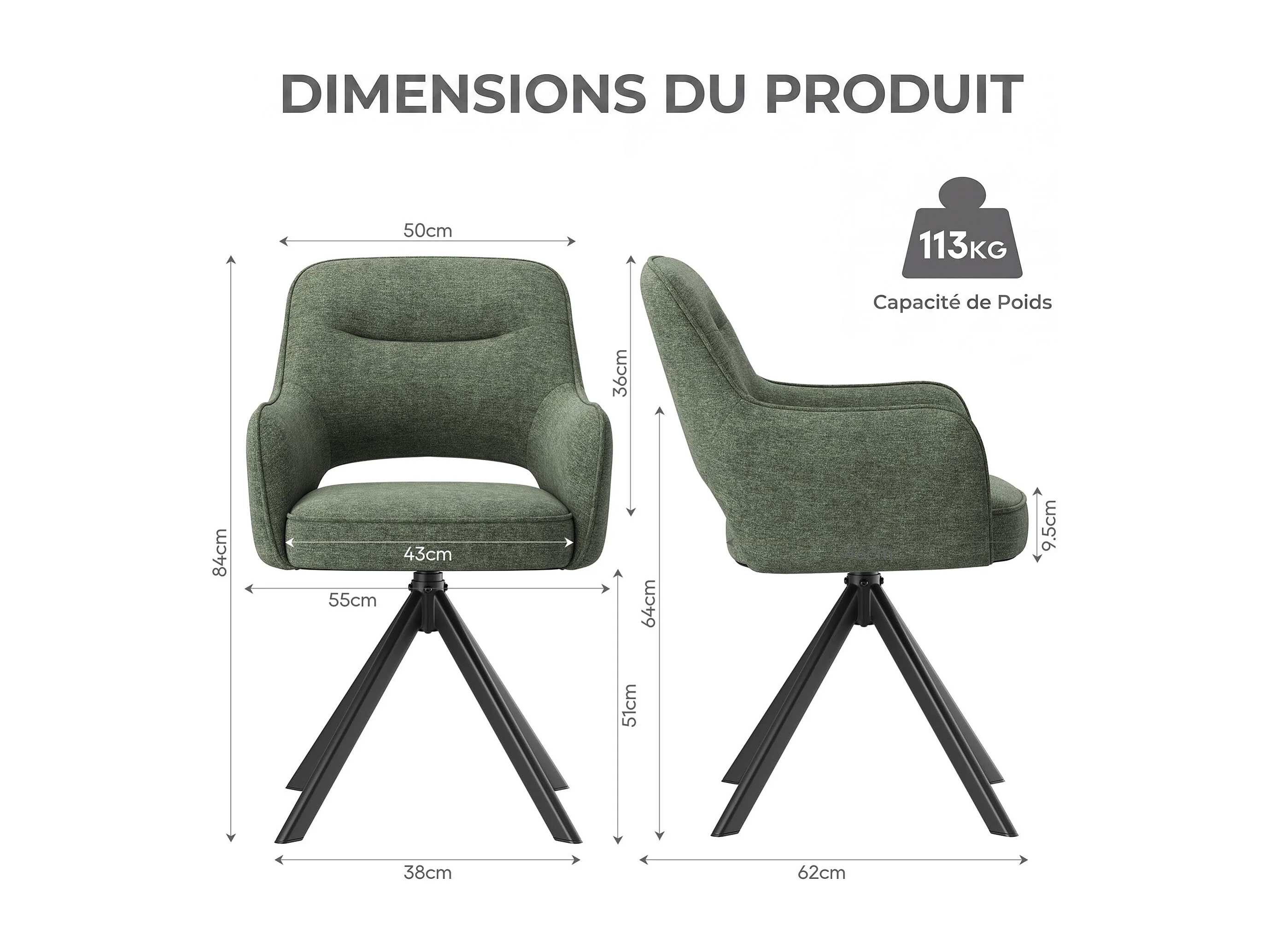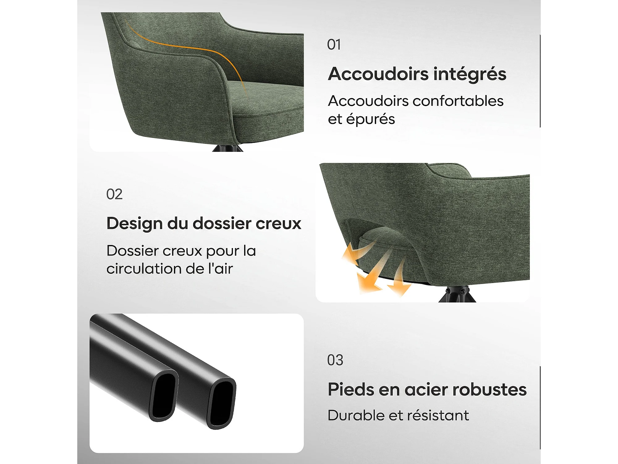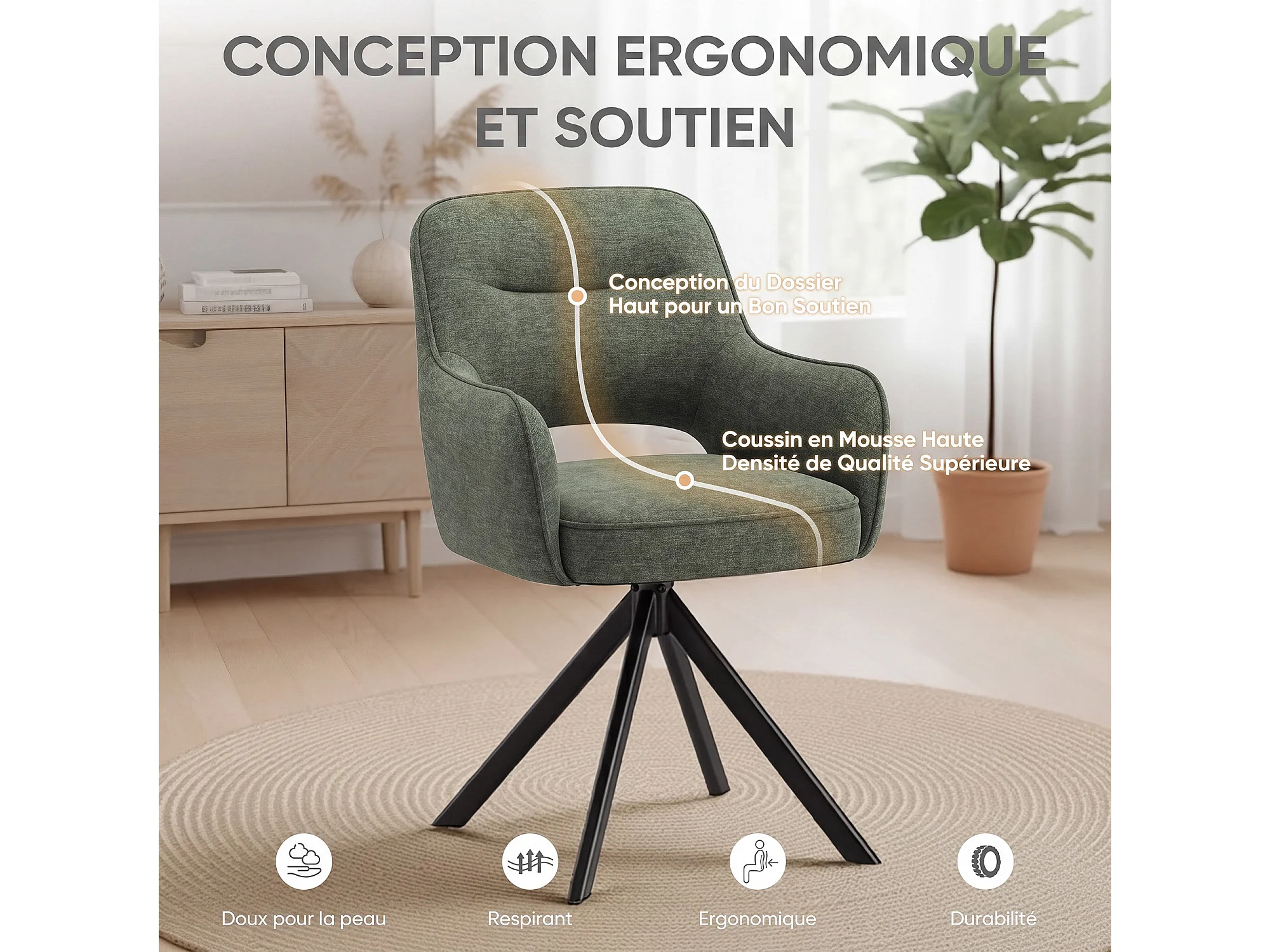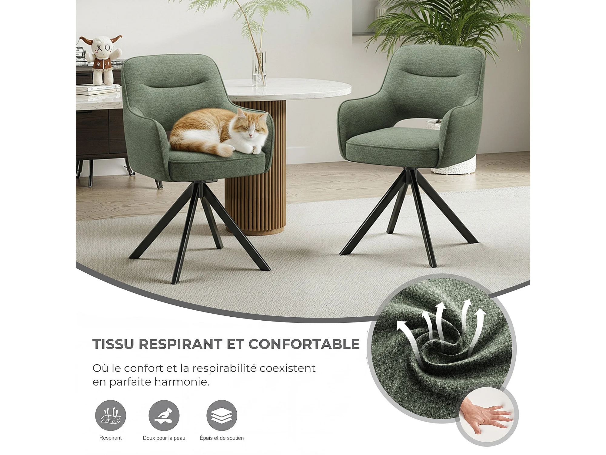 Zestaw 2 obrotowych krzeseł premium z półpodłokietnikami – Metalowa podstawa o wysokiej stabilności – Beżowy