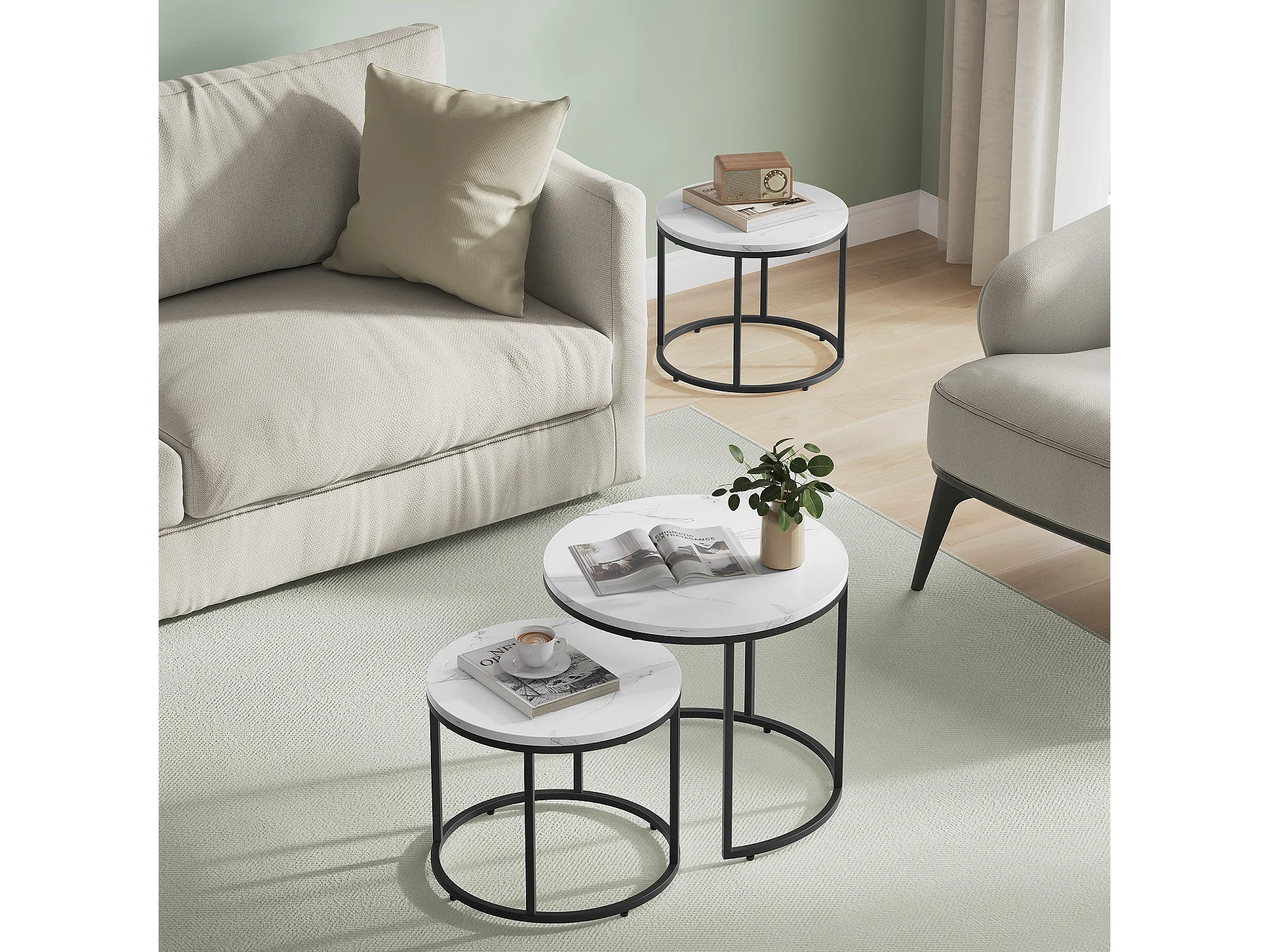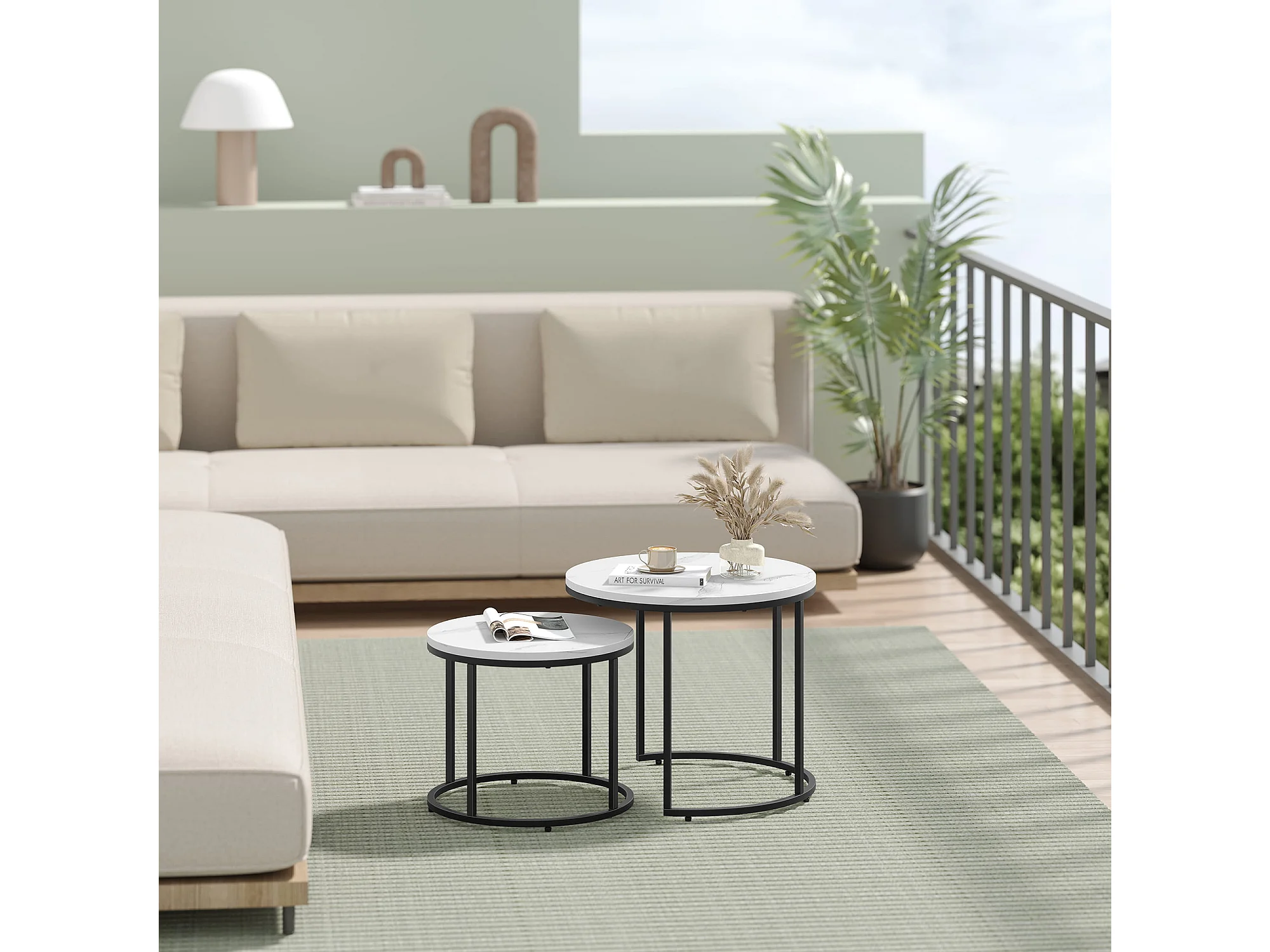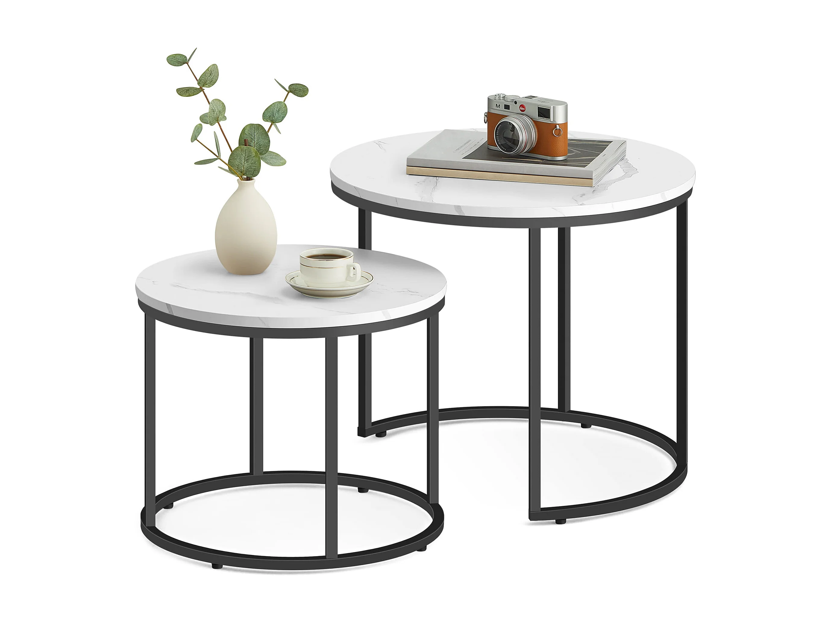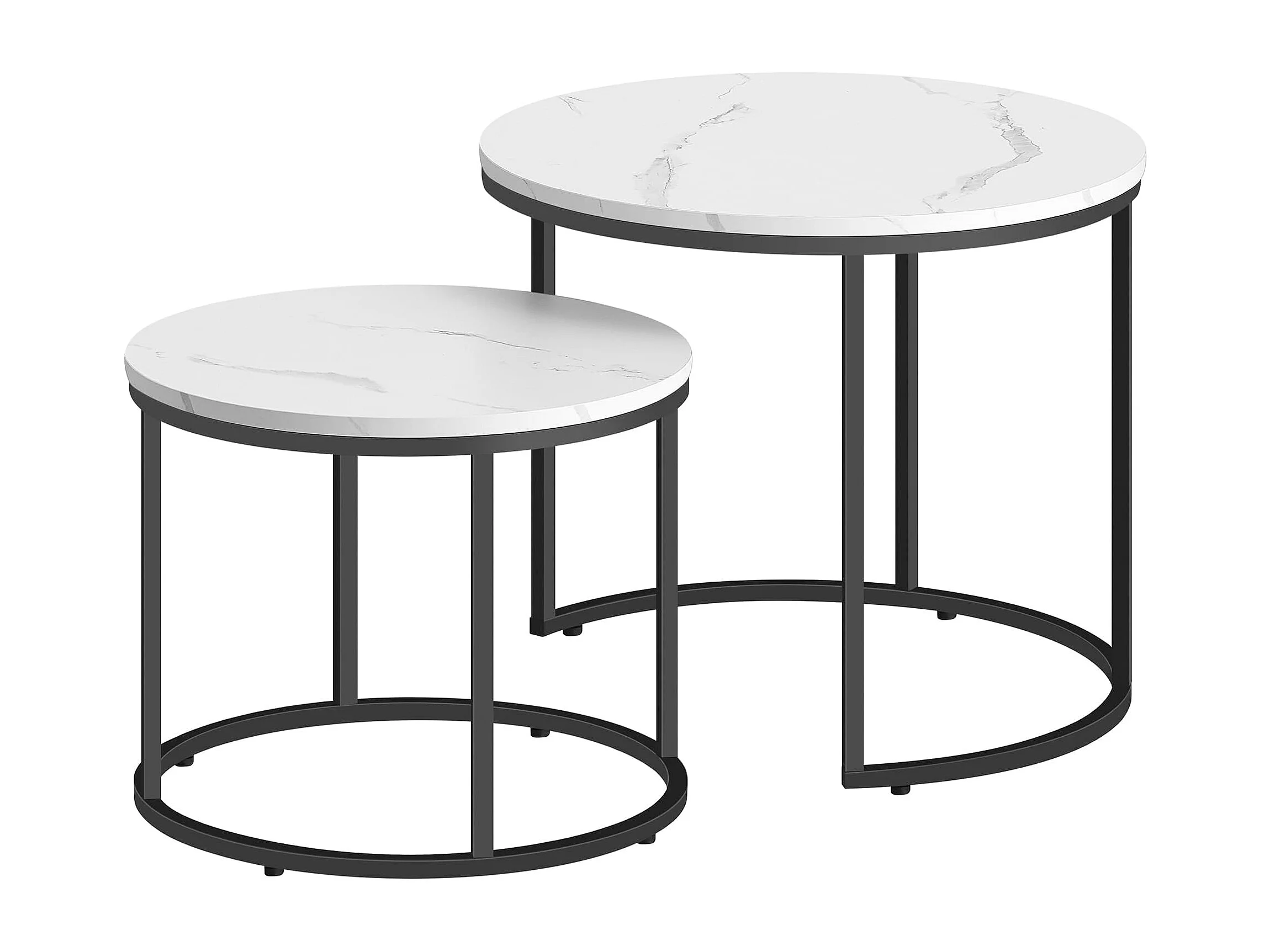 Zestaw 2 okrągłych stolików kawowych Valora | Marmurowy blat z czarnymi nogami