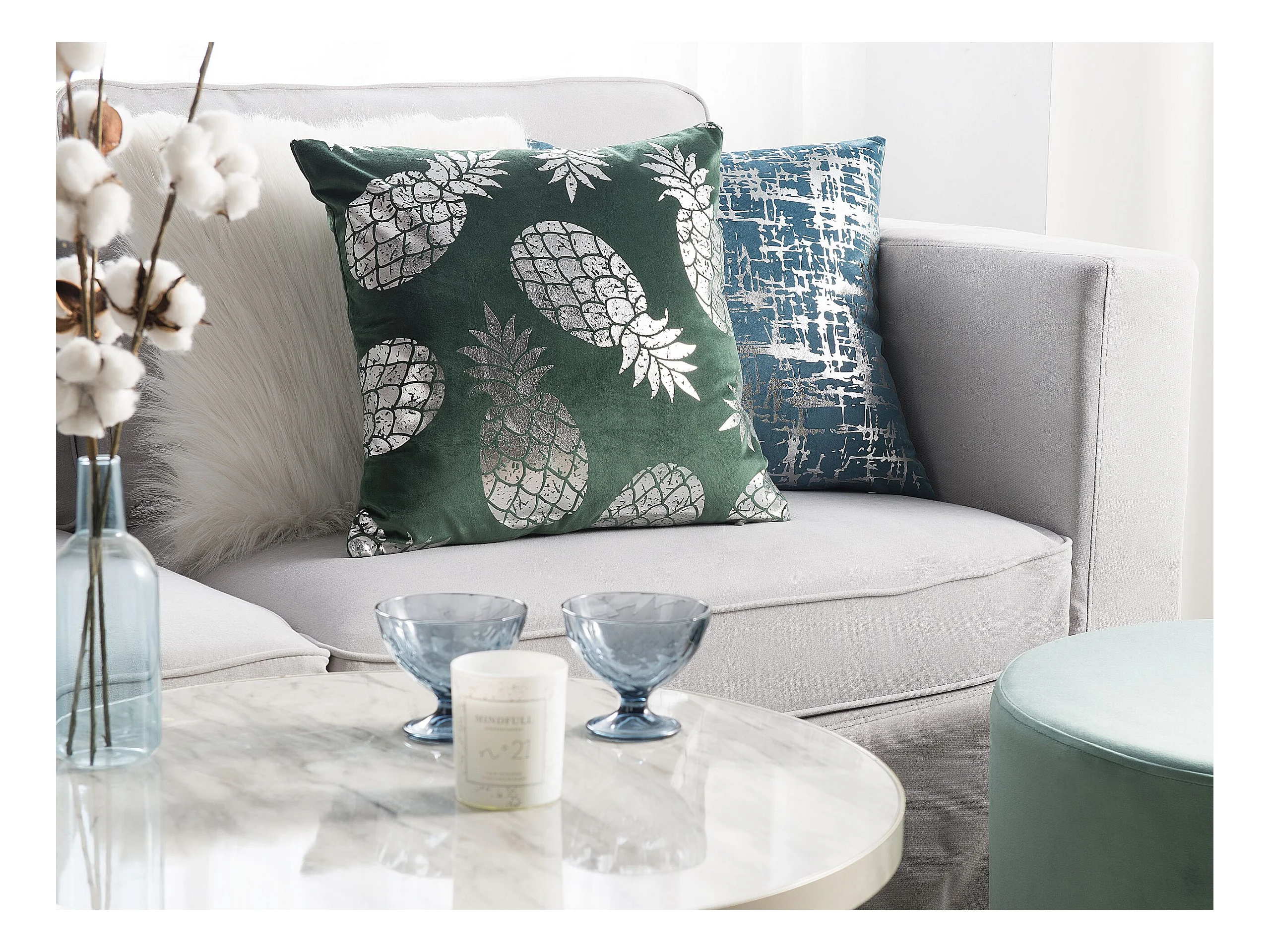 2 welurowe poduszki dekoracyjne wzór w ryby 45 x 45 cm zielone SOLIDAGO