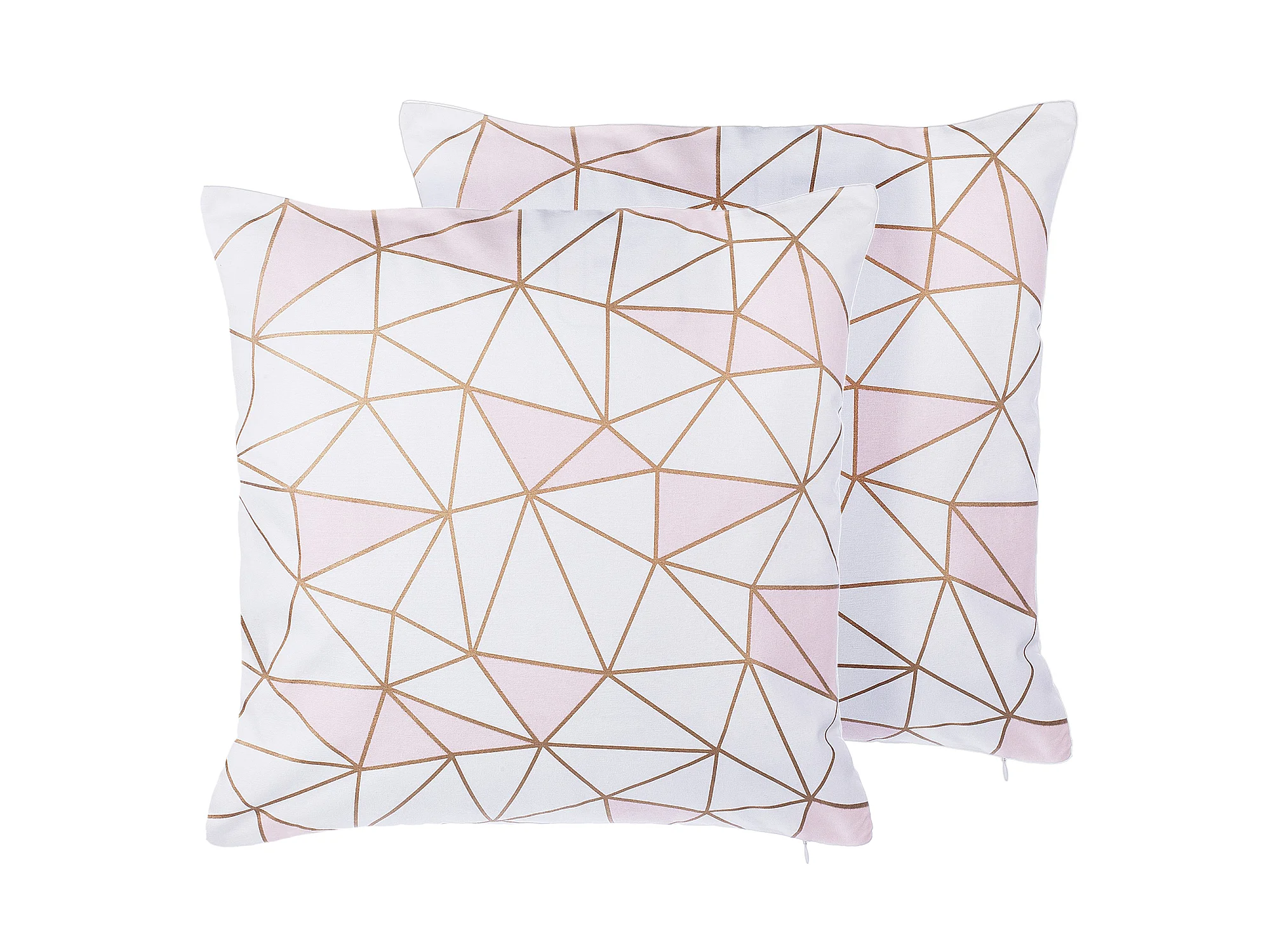Zestaw 2 poduszek dekoracyjnych CLARKIA Bawełna 45 x 45 cm Różowy Wzór geometryczny