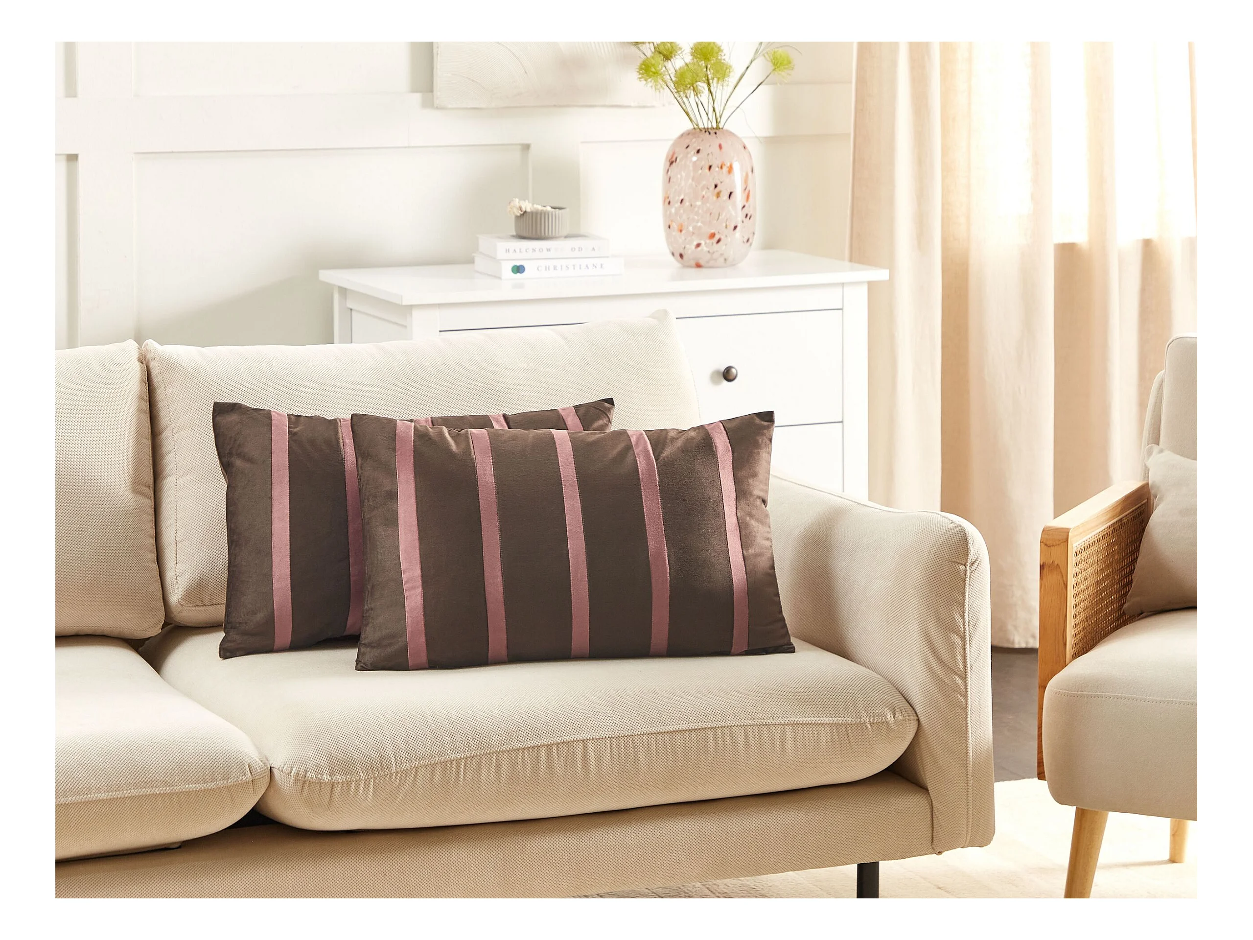 Zestaw 2 poduszek dekoracyjnych CRODYLINE Welur 35 x 60 cm Brązowy W paski