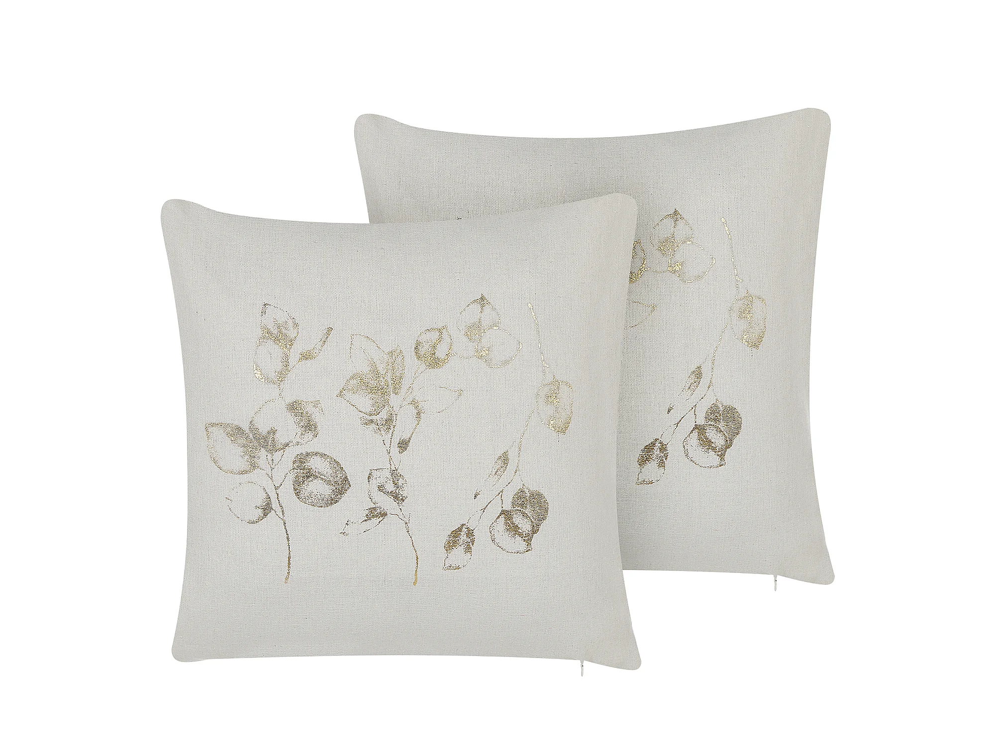 Zestaw 2 poduszek dekoracyjnych GOMPHRENA 45 x 45 cm Jasnobeżowy Wzór roślinny