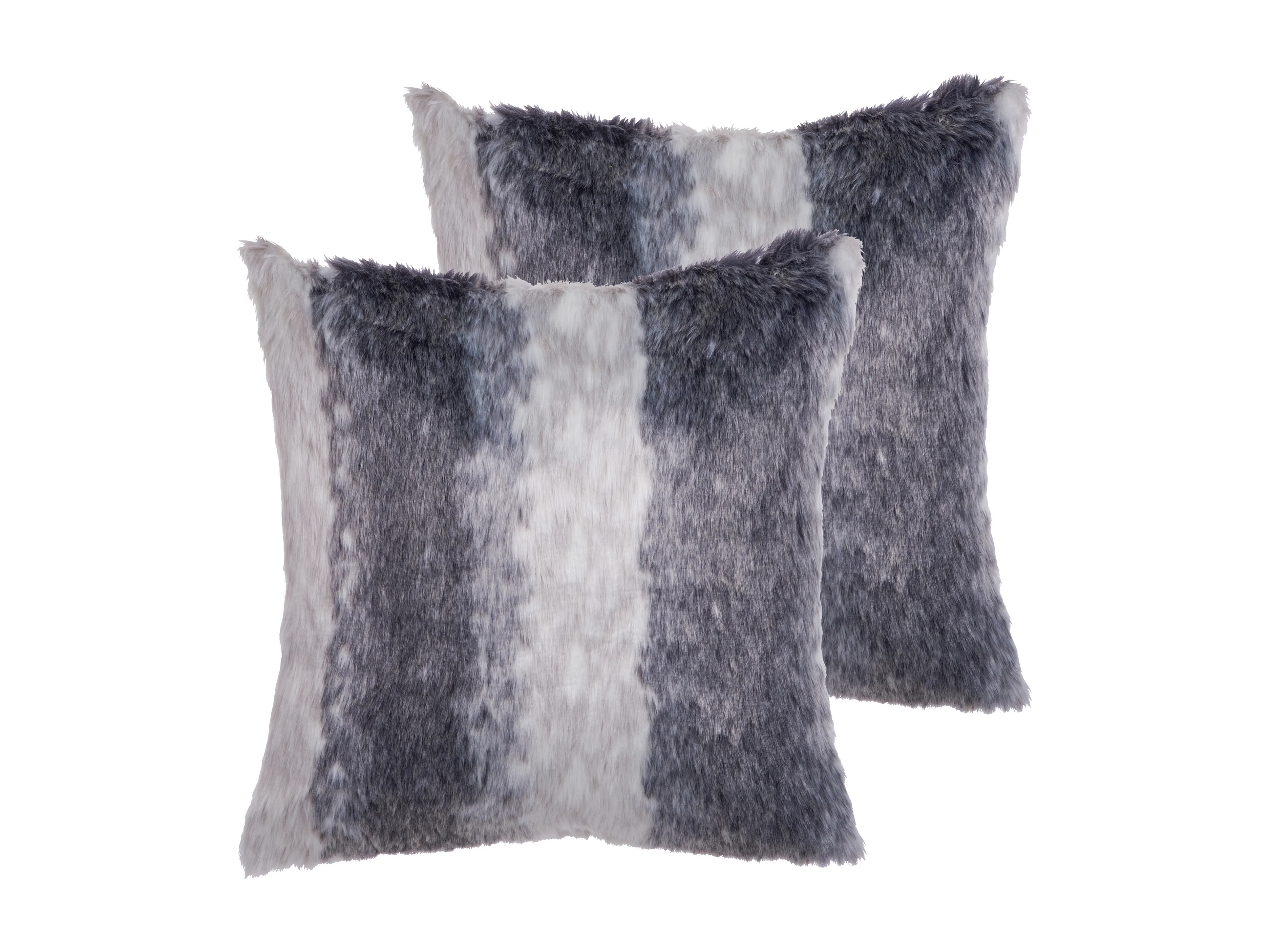 Zestaw 2 poduszek dekoracyjnych HORDEUM Sztuczne futro 45 x 45 cm Szary W paski