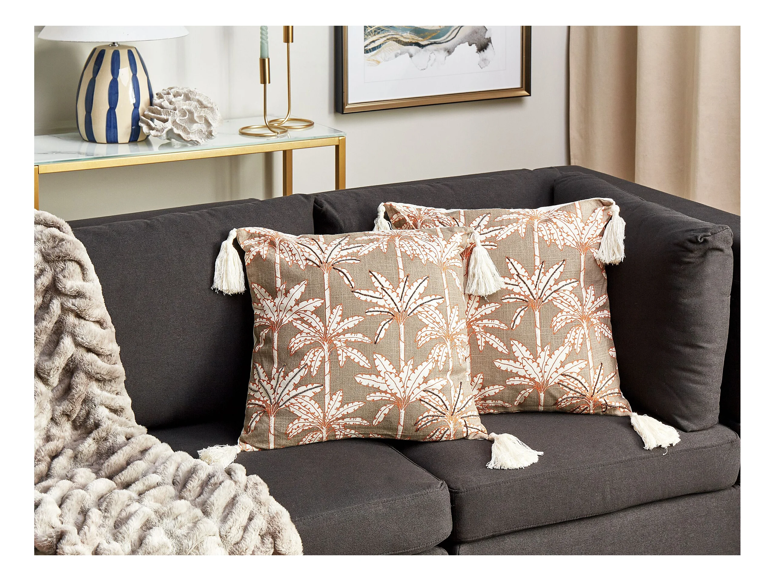 2 poduszki dekoracyjne w ptaki z frędzlami 45 x 45 cm wielokolorowe MALLOW