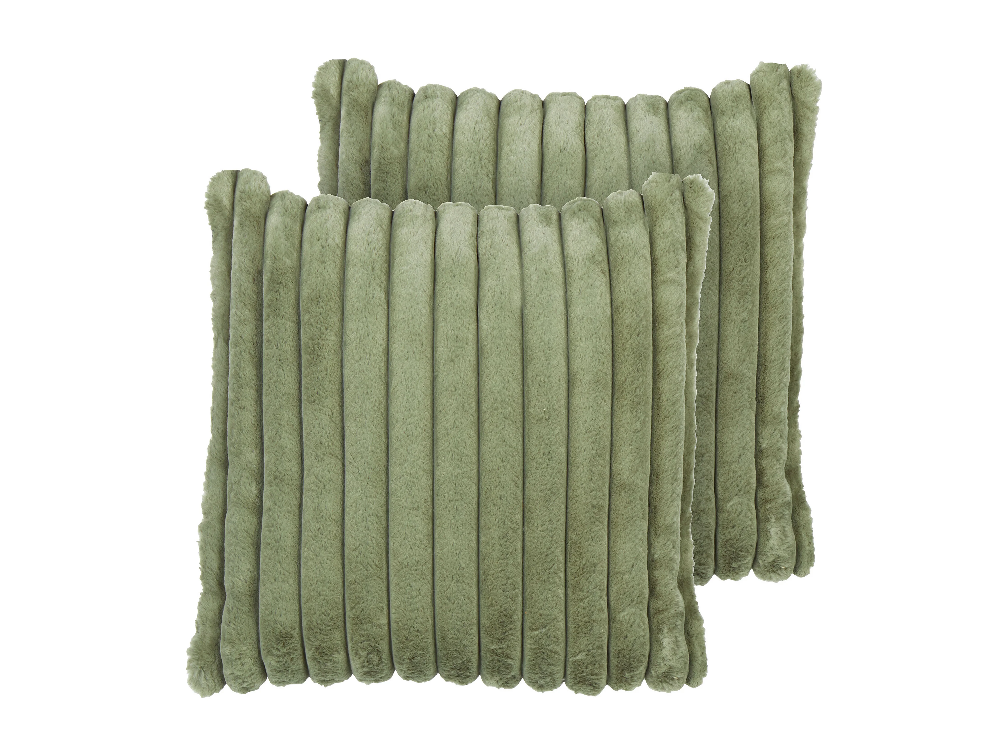 Zestaw 2 poduszek dekoracyjnych PUMILA Sztuczne futro 45 x 45 cm Oliwkowy W paski