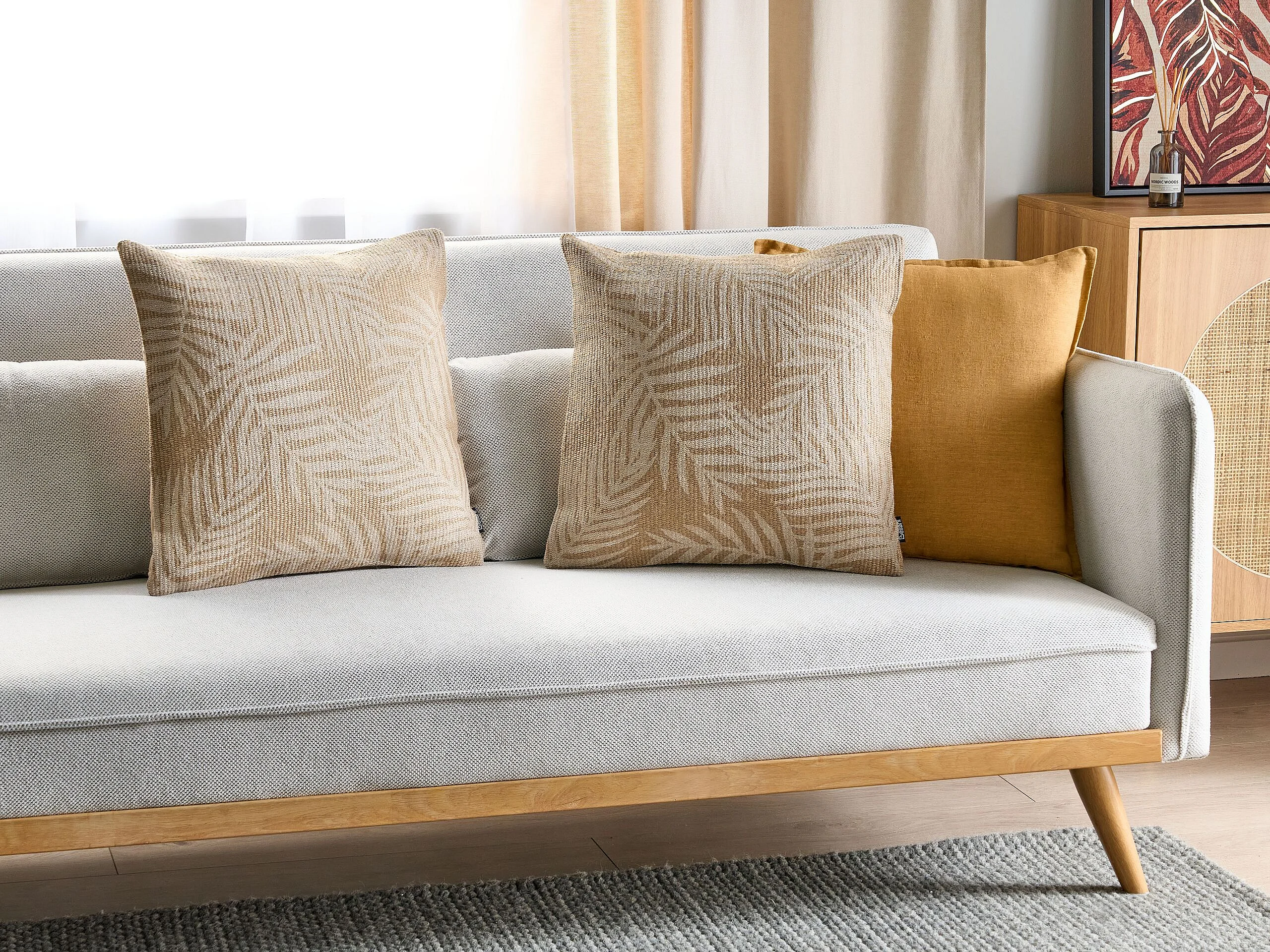 Zestaw 2 poduszek dekoracyjnych RUBUS Juta 45 x 45 cm Beżowy Wzór roślinny