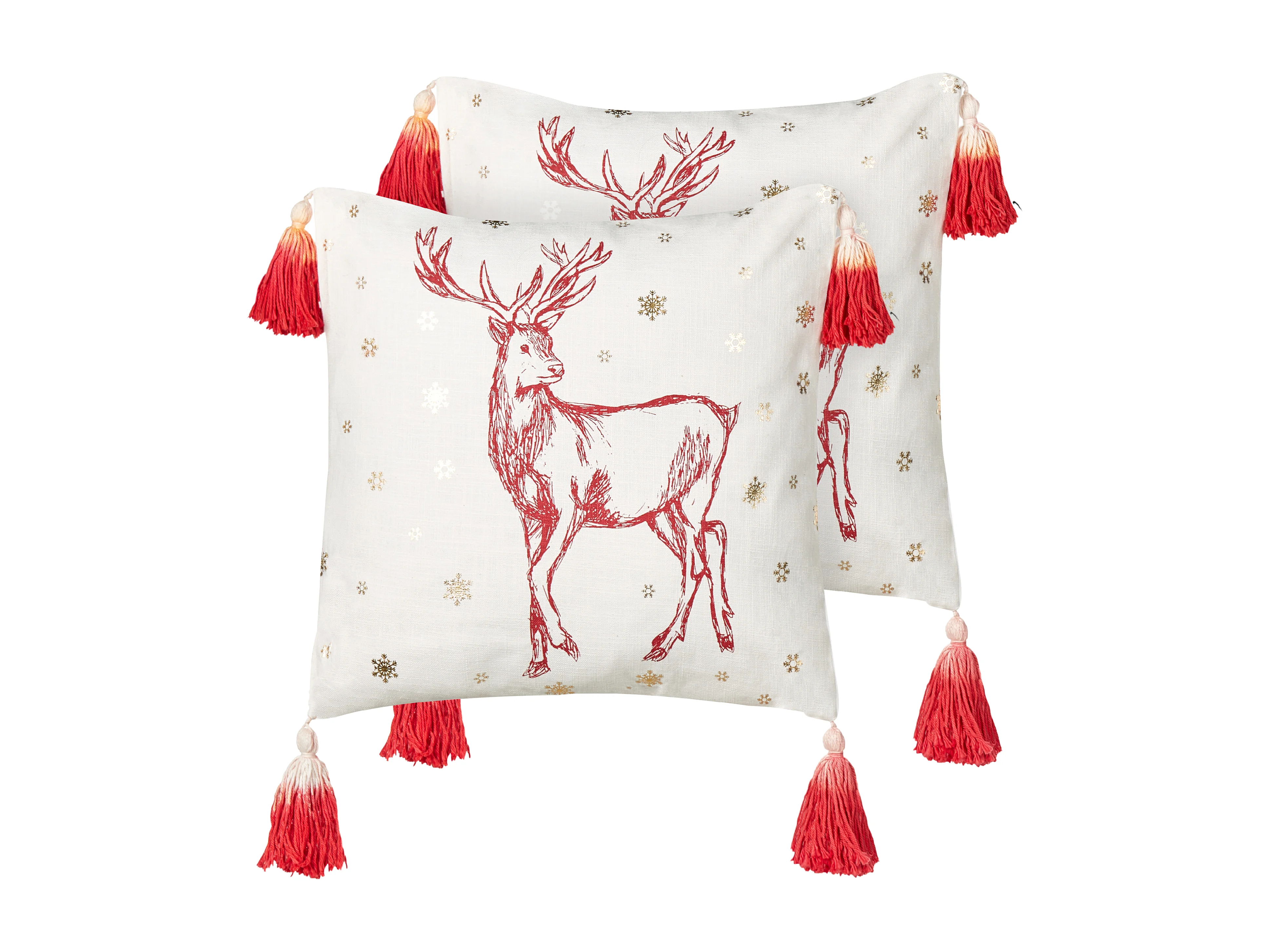 Zestaw 2 poduszek dekoracyjnych SKIMMIA Bawełna 45 x 45 cm Biały Wzór świąteczny