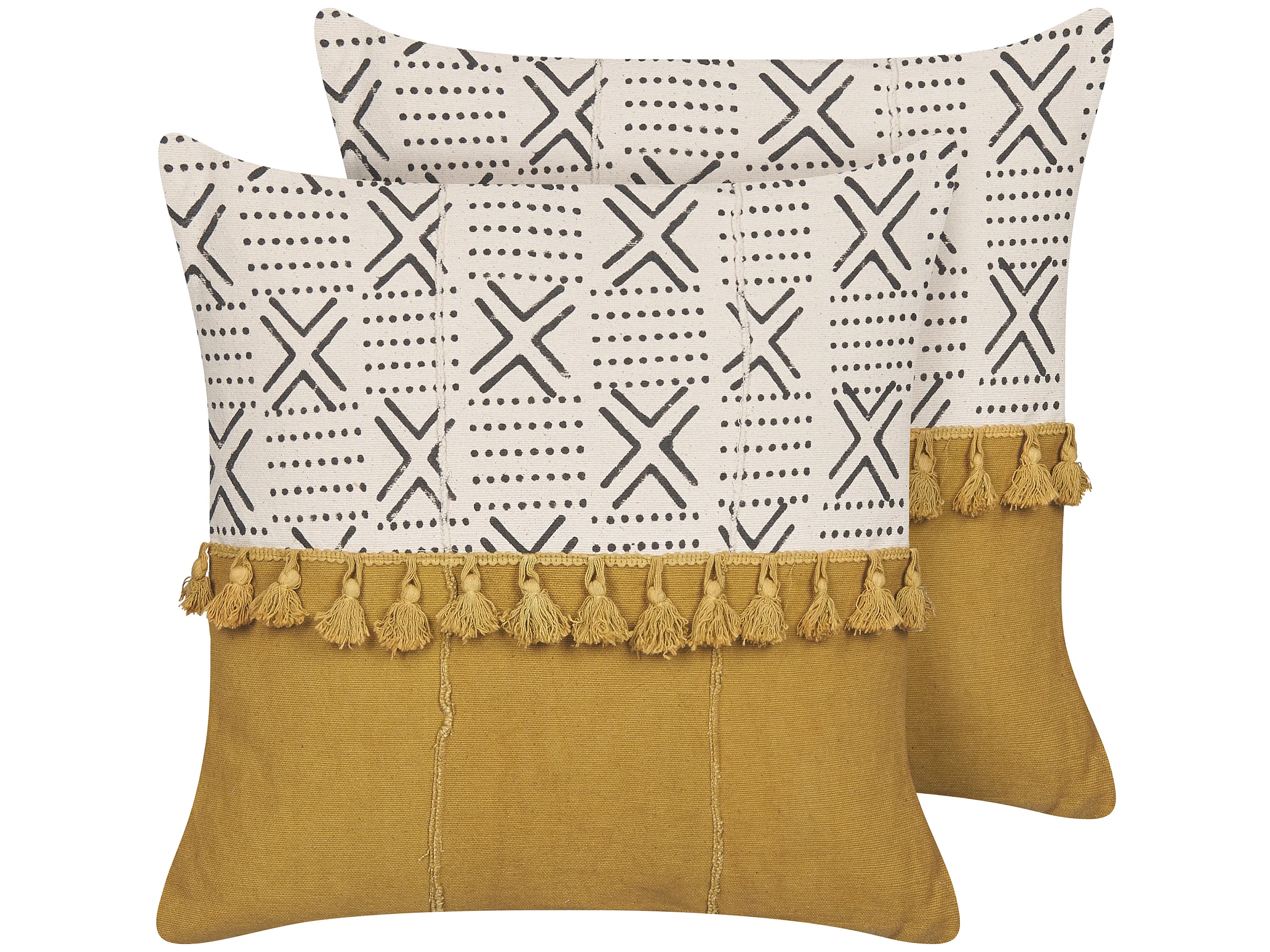 Zestaw 2 poduszek dekoracyjnych WOODI Bawełna 45 x 45 cm Żółty Biały Wzór geometryczny