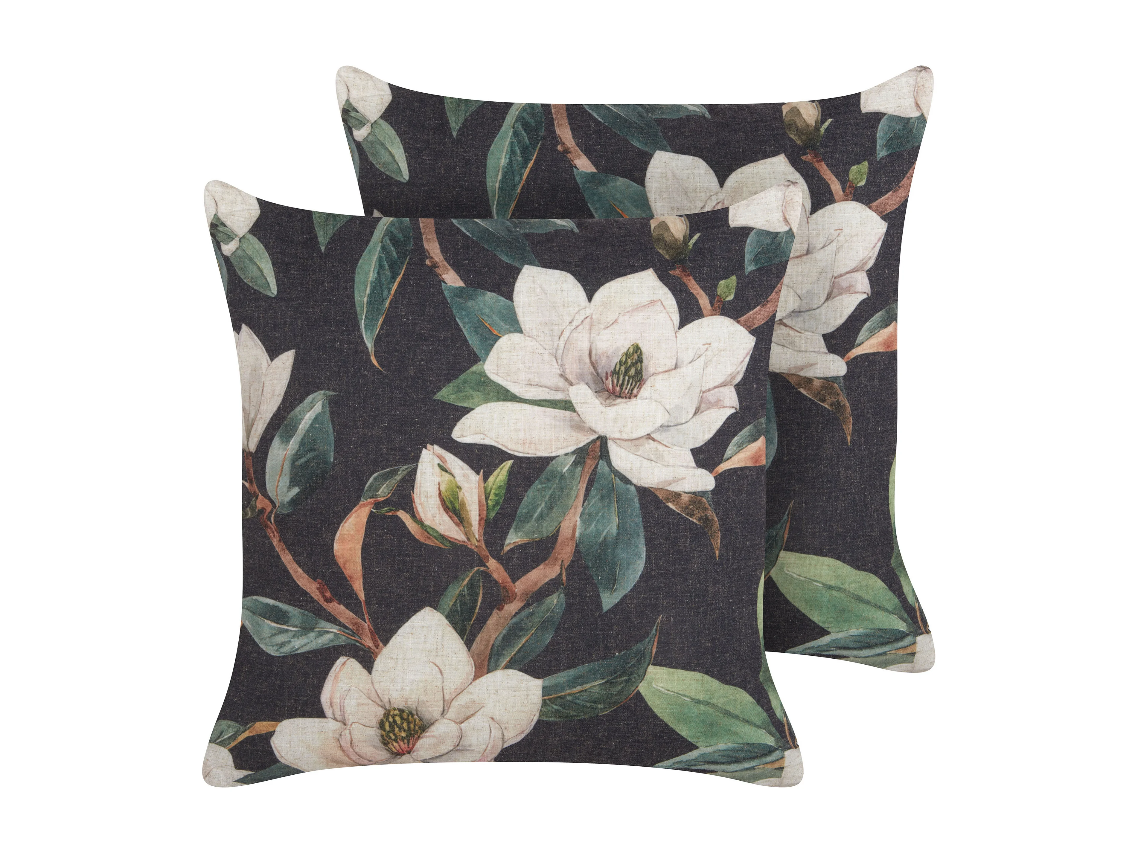 Zestaw 2 poduszek dekoracyjnych HEDERA 45 x 45 cm Czarny Wzór kwiatowy