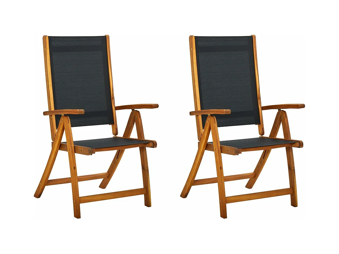 Zestaw 2 składanych krzeseł ogrodowych z drewna akacjowego i odpornego na warunki atmosferyczne materiału tekstylnego