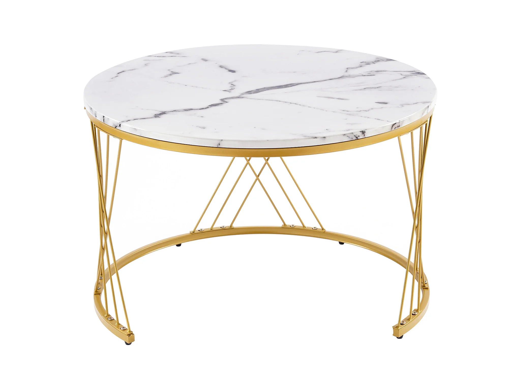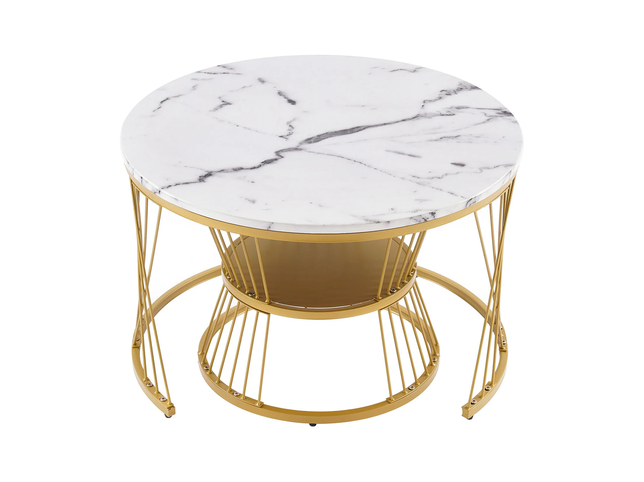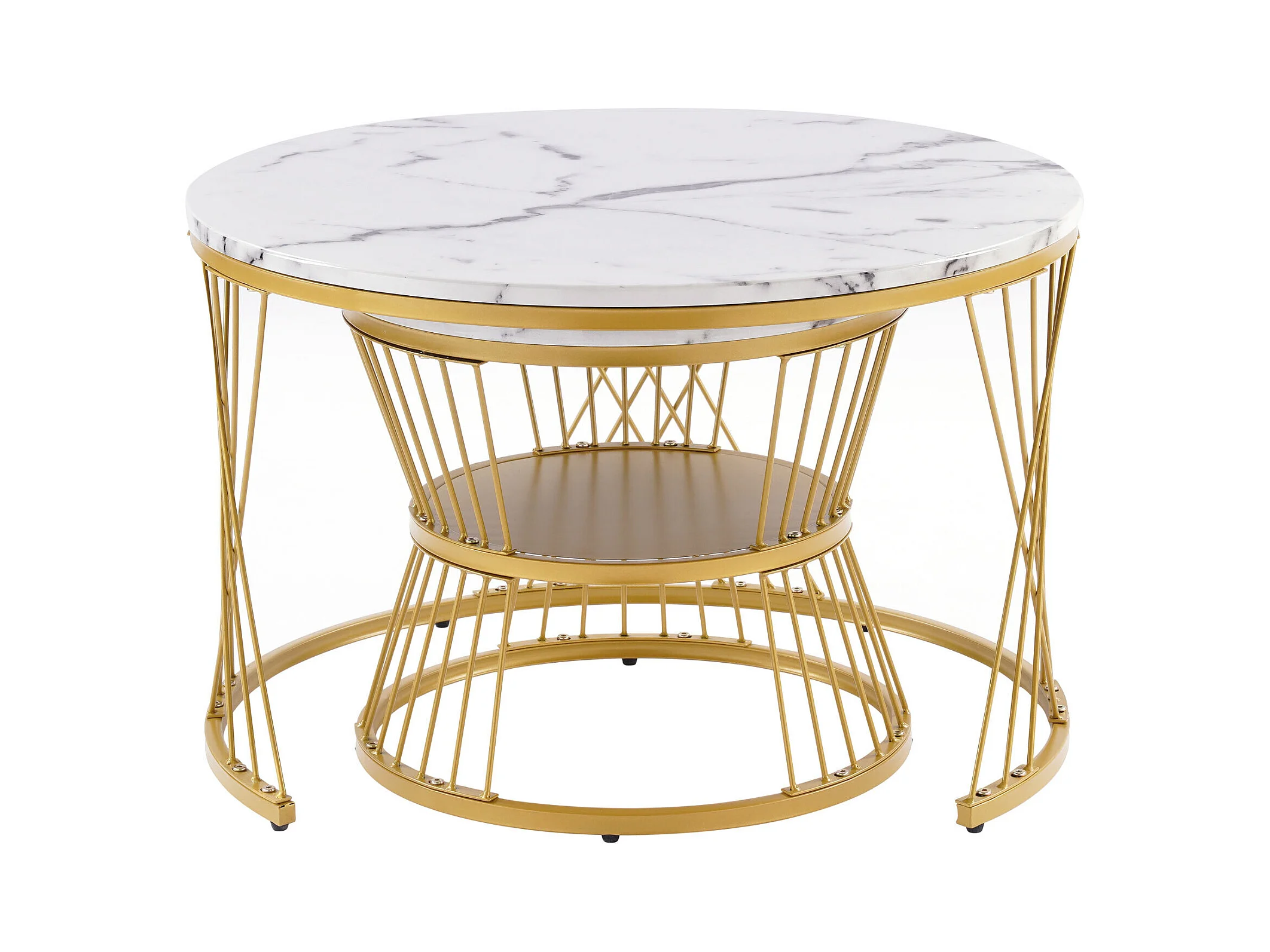 Zestaw 2 stolików kawowych - Okrągły stolik kawowy - złota metalowa rama - naklejka imitująca marmur