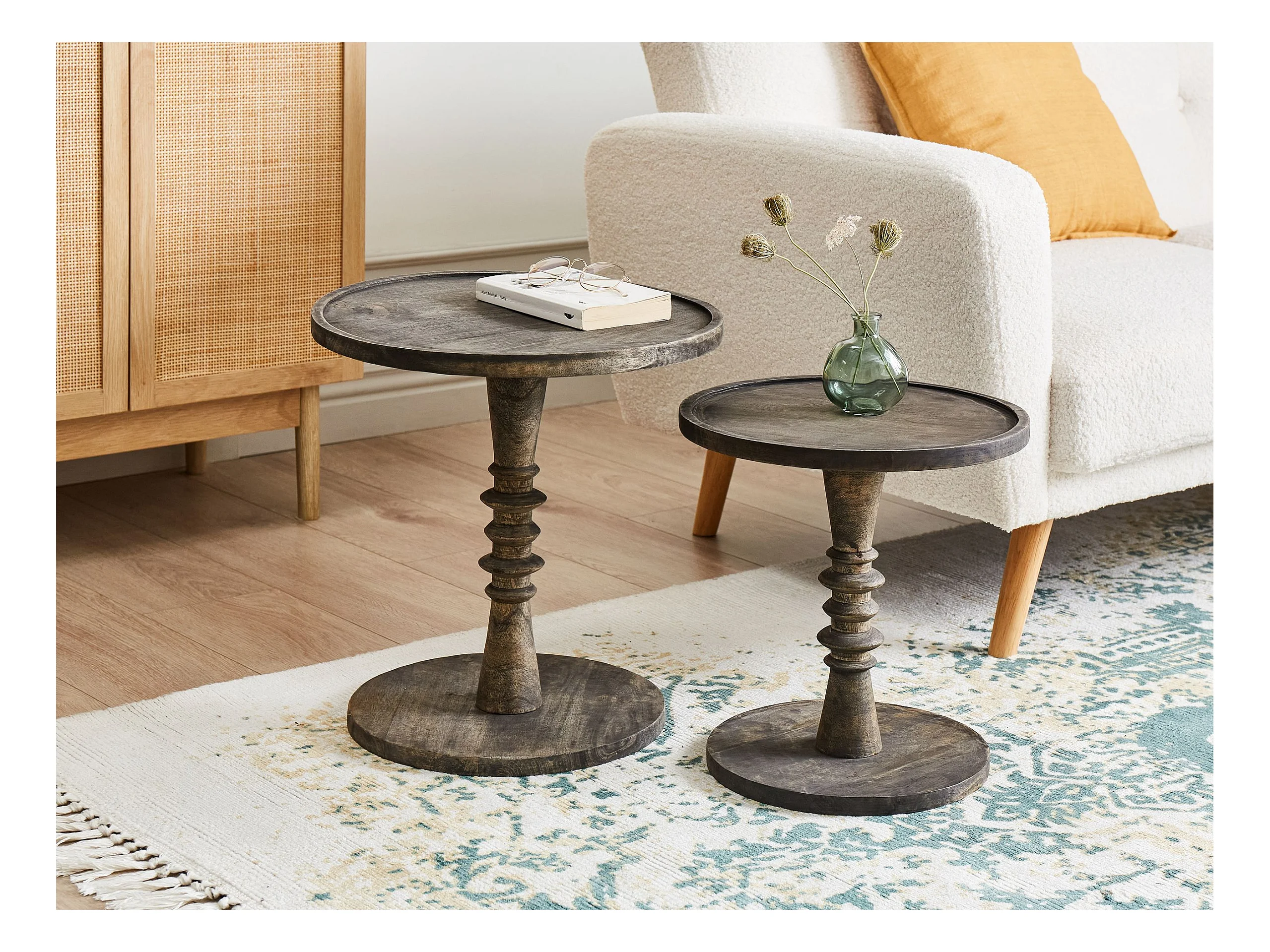 Zestaw 2 stolików pomocniczych THALIA Drewno mango Ciemnobrązowy