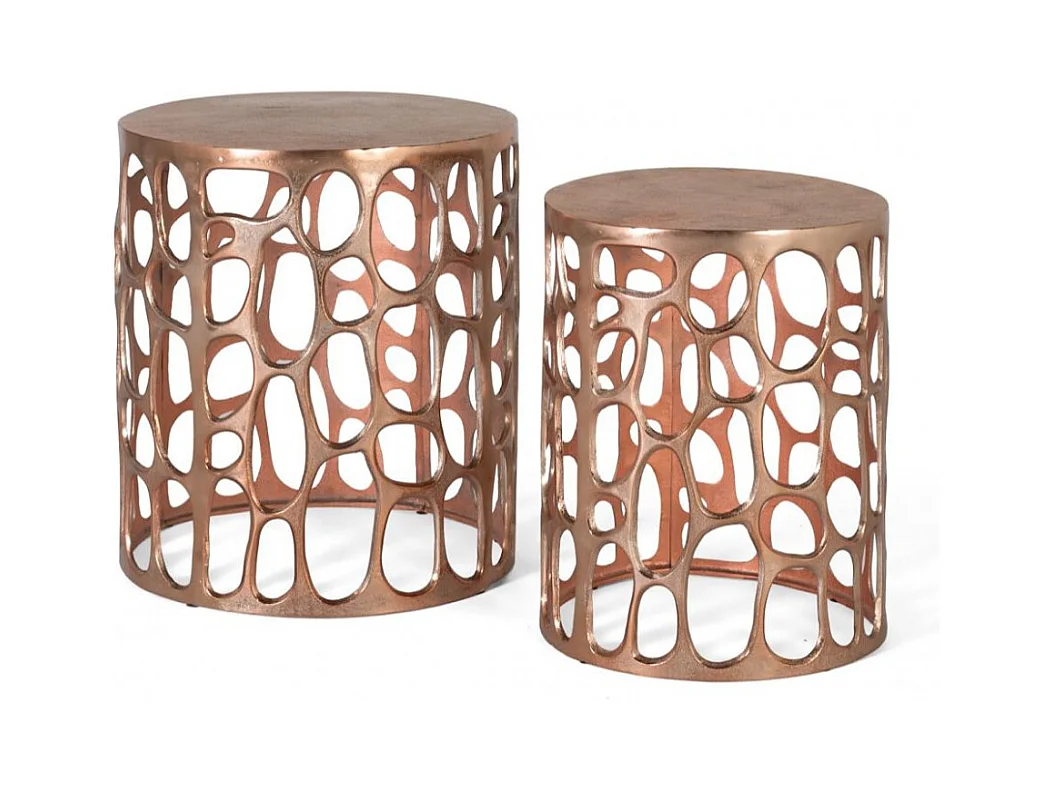 Zestaw 2 stolików wykonanych z metalu i wykończonych w kolorze postarzanej miedzi