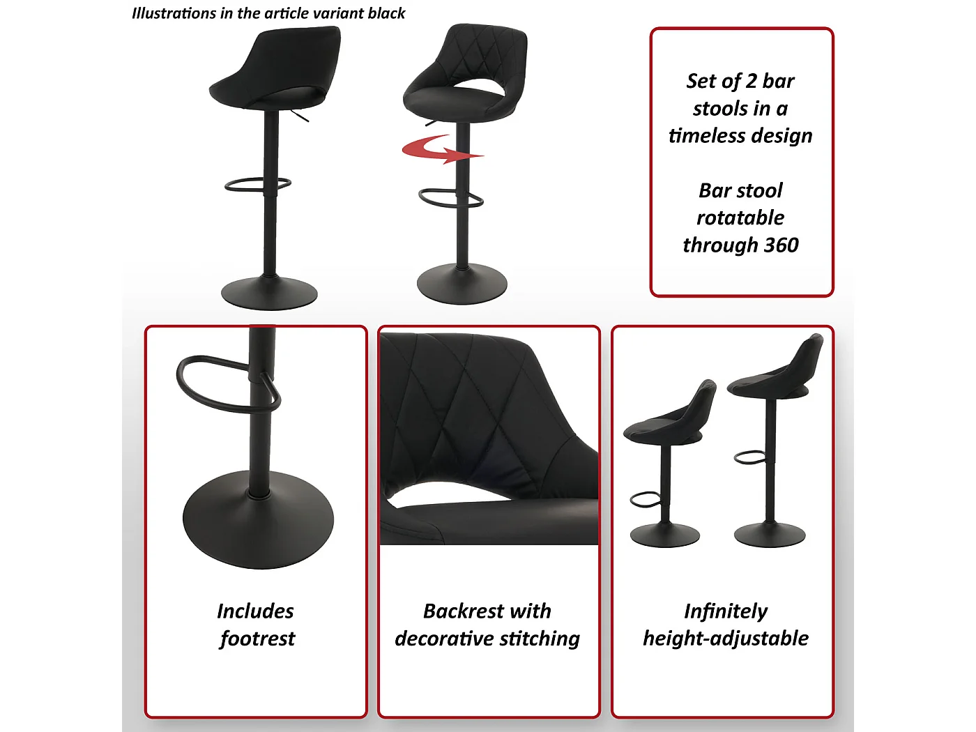 Zestaw 2 stołków barowych MCW-N64, brązowy