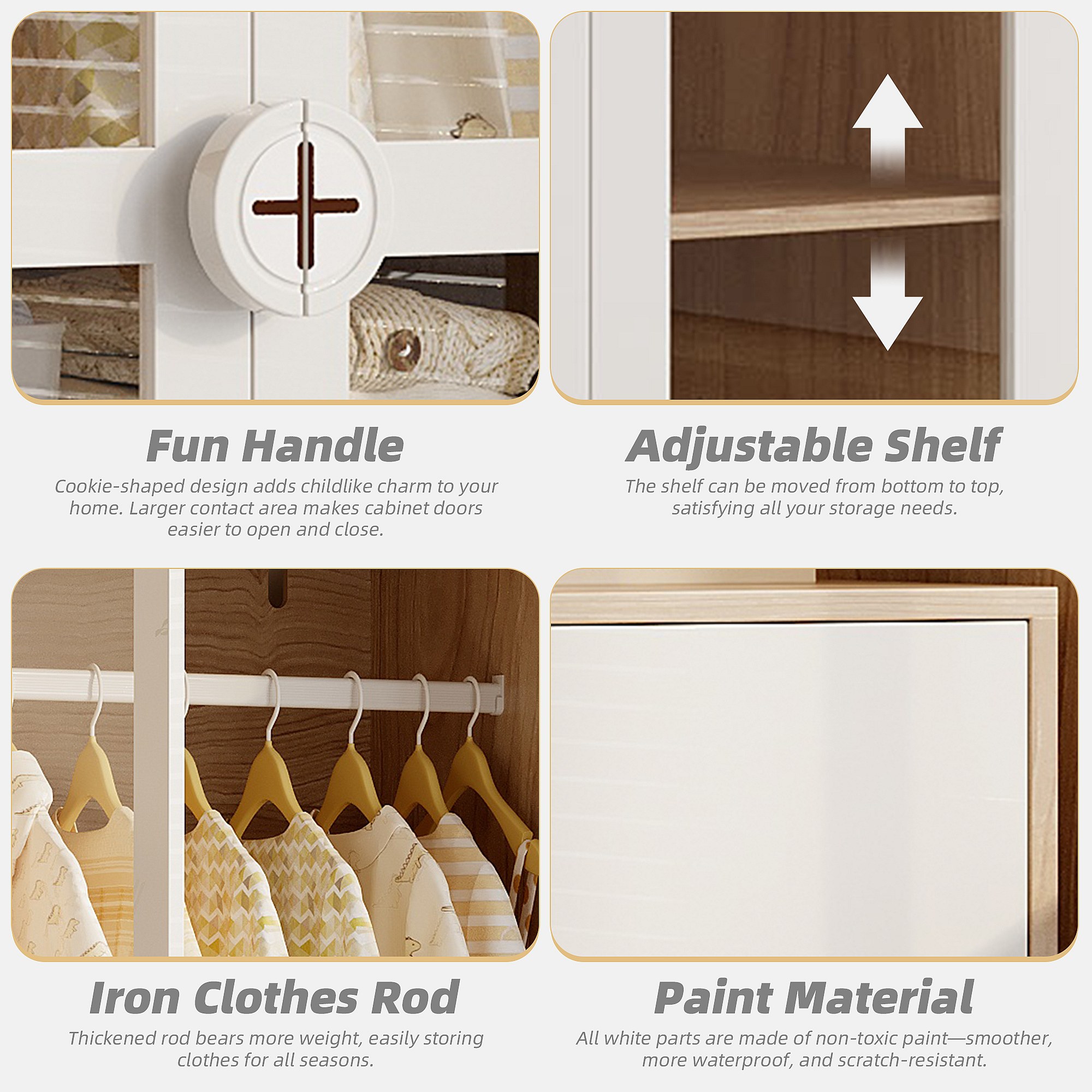 Przezroczyste drzwi szklane umożliwiają łatwy dostęp do ubrań, a biały stelaż dodaje prostoty i przejrzystości, czyniąc dostęp praktycznym i estetycznym.