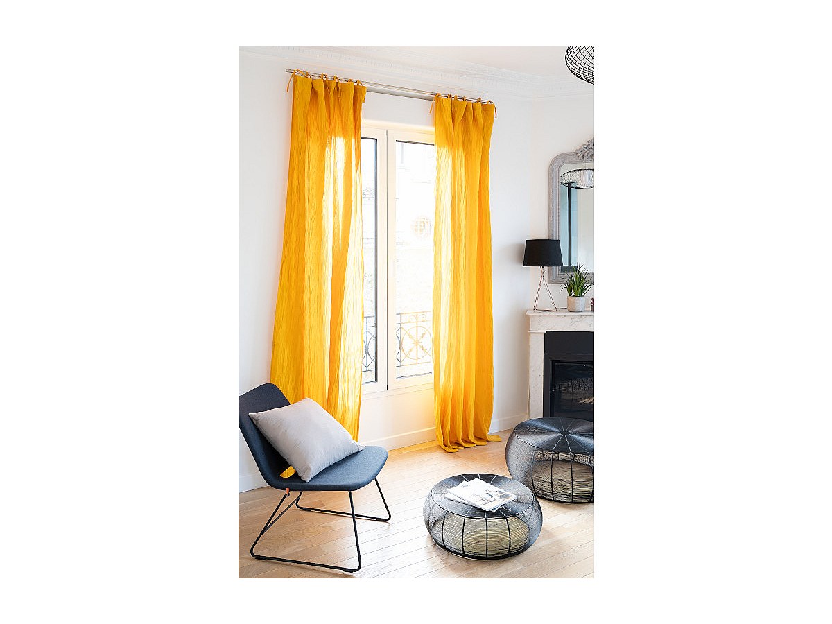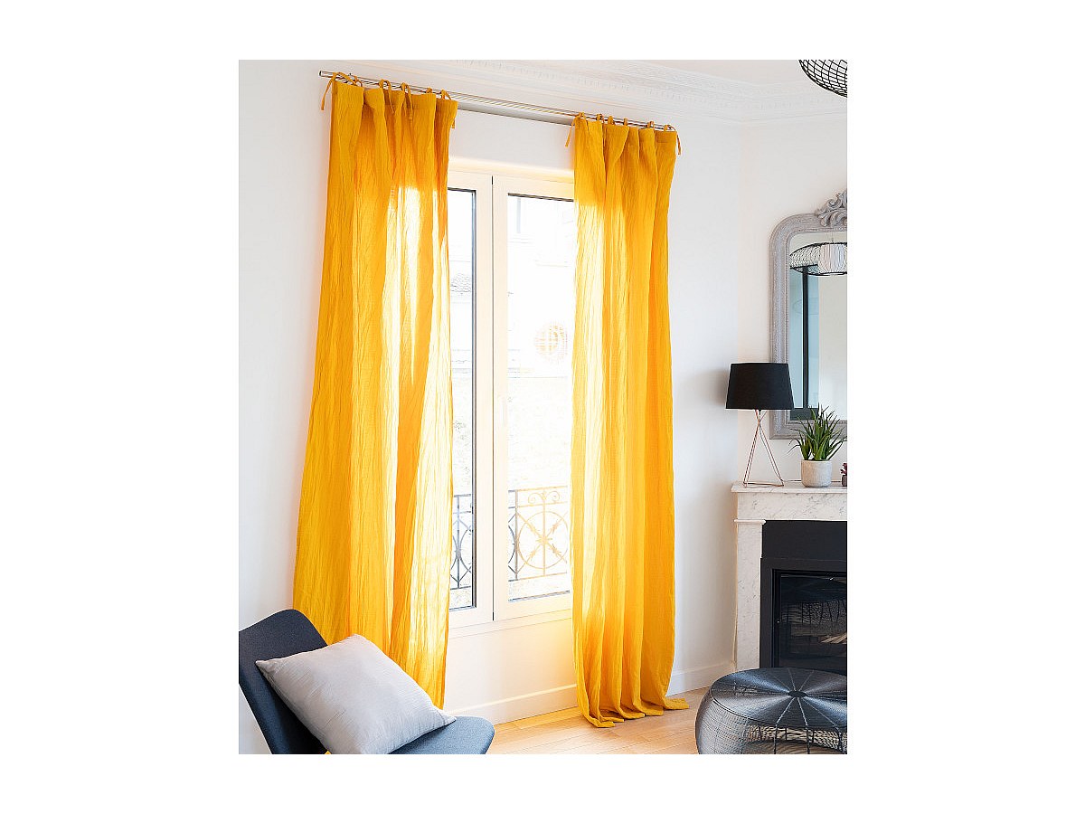 Zestaw 2 zasłon LEGERO z muślinu bawełnianego – 140 × 260 cm – kolor musztardowy