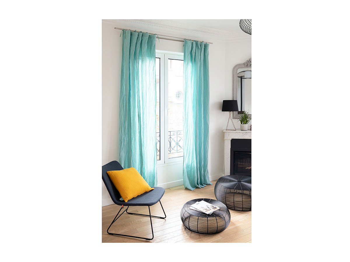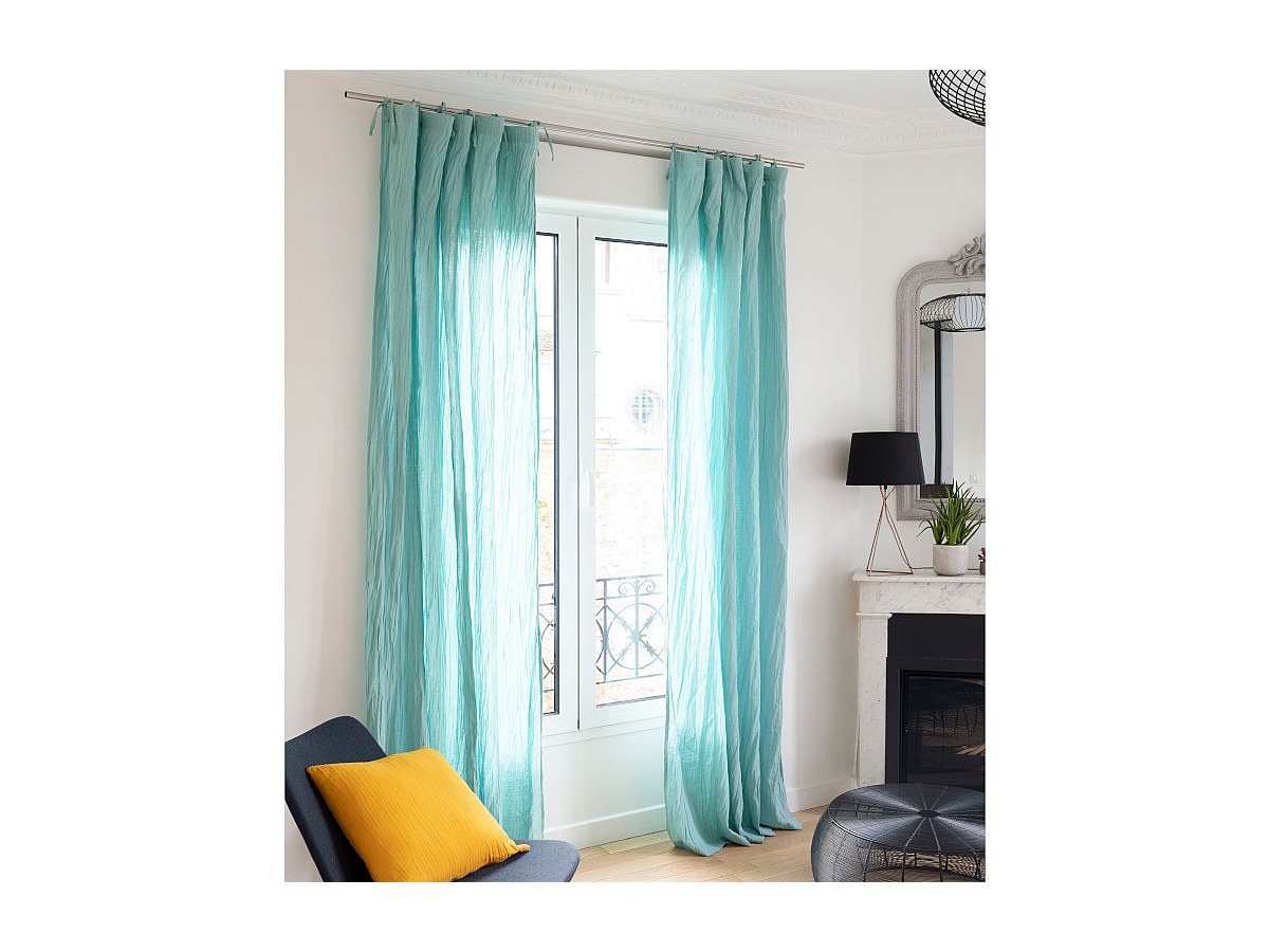 Zestaw 2 zasłon LEGERO z muślinu bawełnianego – 140 × 260 cm – kolor niebieski