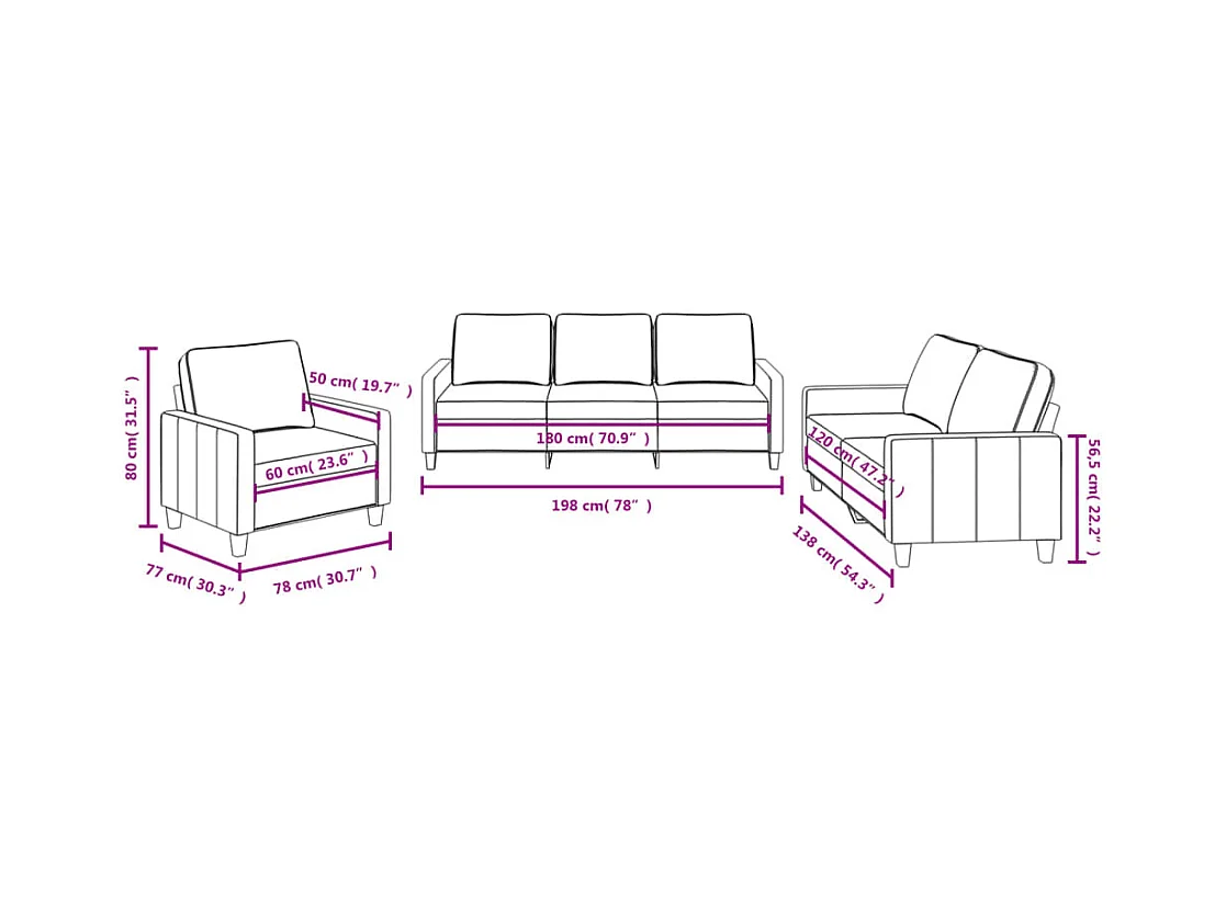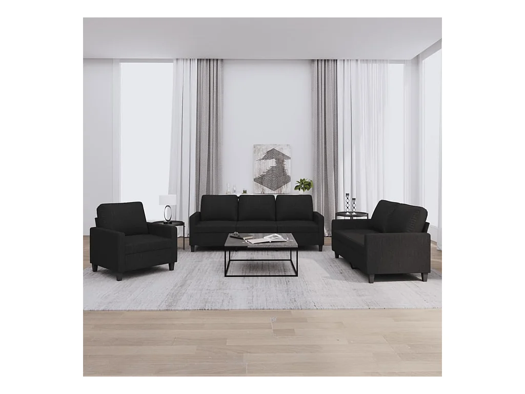 Zestaw 3-częściowych Kanap w Kolorze Czarnym z Wygodnymi Poduszkami