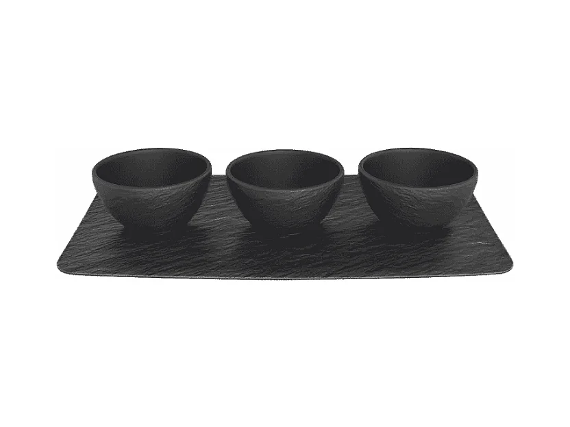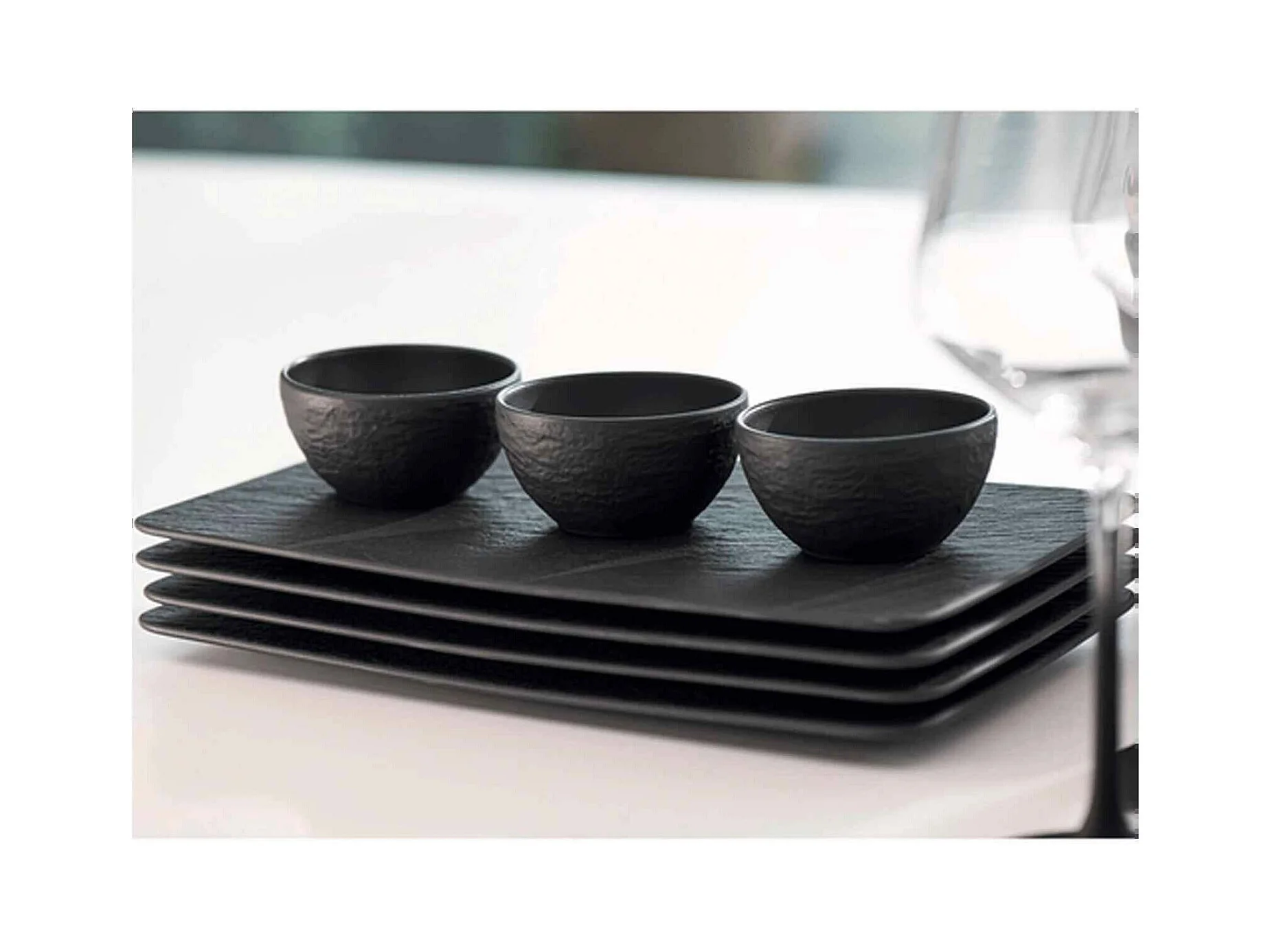 Zestaw 3 miseczek i tacy z porcelany czarnej, 60 ml, Manufacture Rock