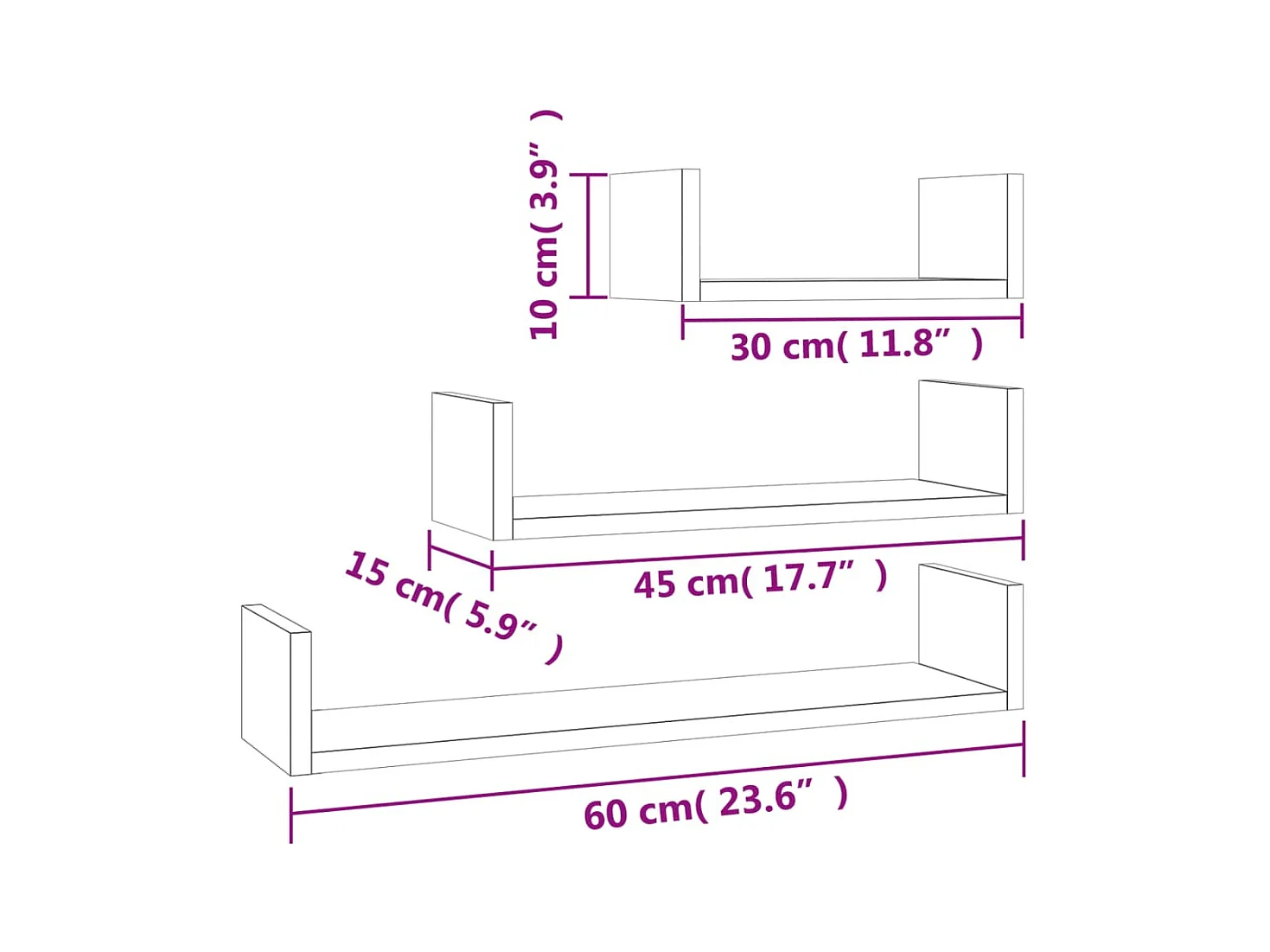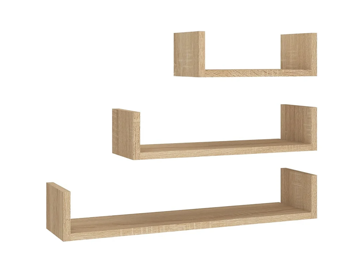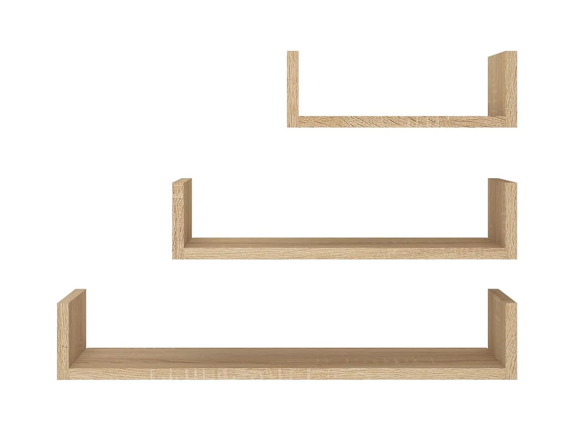 Zestaw 3 Półek Ściennych Dąb Sonoma Nowoczesne Drewno Inżynieryjne
