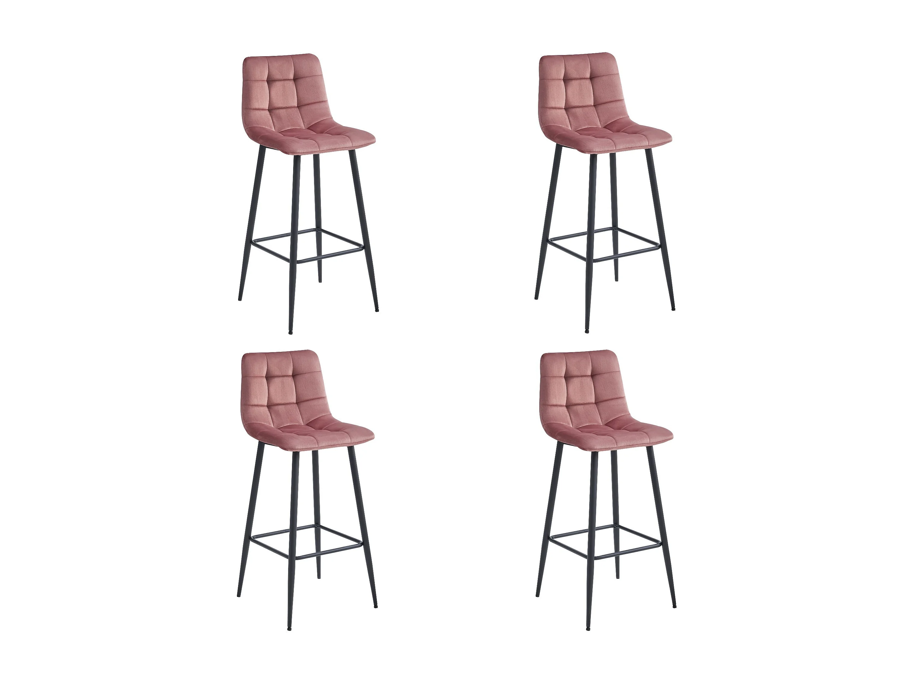 Zestaw 4 krzeseł barowych Valora LIVI – ciemnoróżowy aksamit / czarne nogi