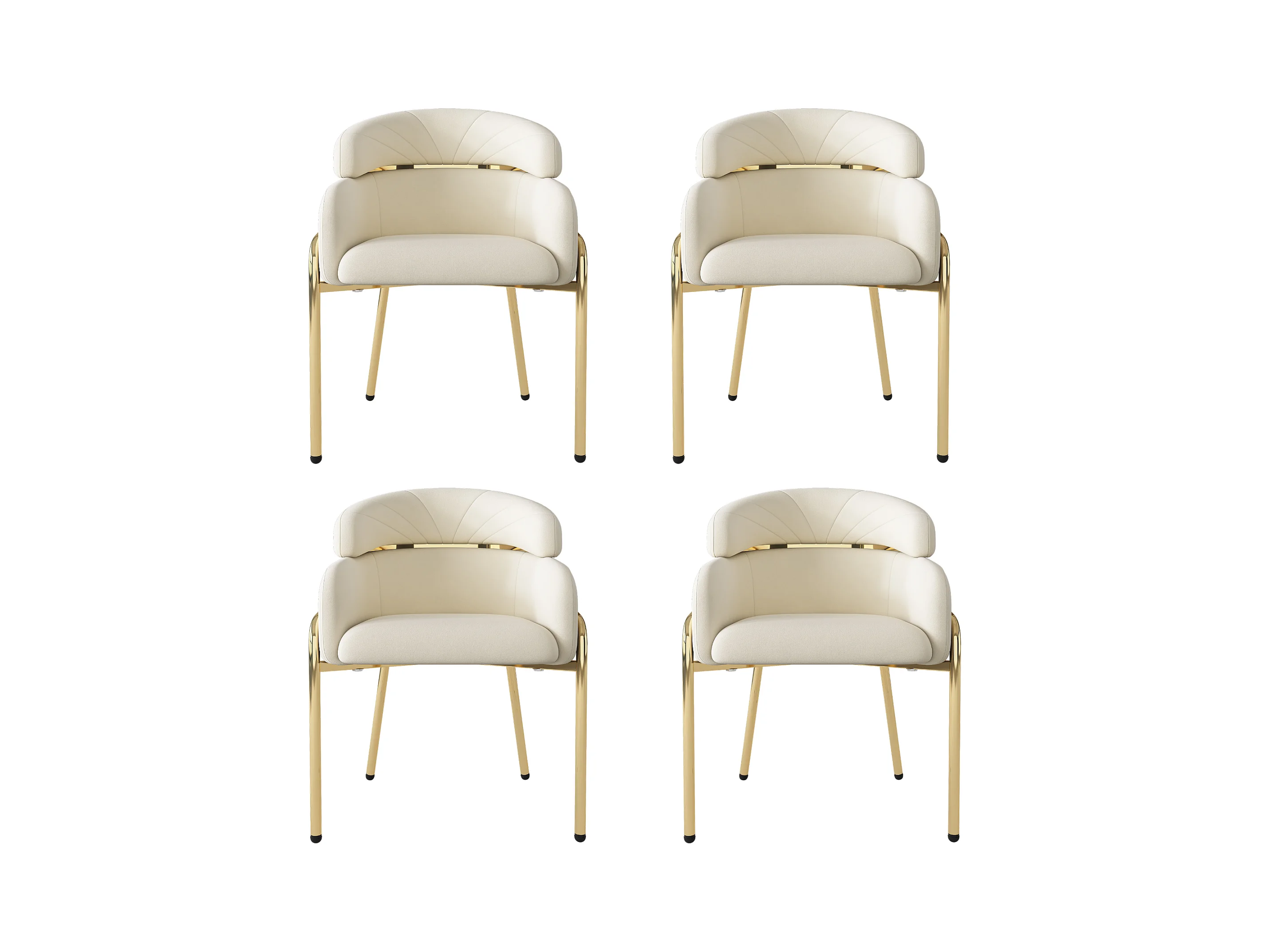 Zestaw 4 luksusowych krzeseł welurowych - 62,23 x 58,42 x 55,88 cm - z czterema złotymi metalowymi nogami - beżowy
